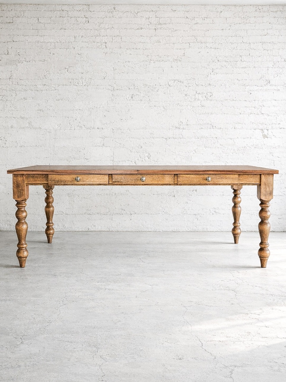 引出しを6杯設置した収納力もあるろくろ足ダイニングテーブルです。