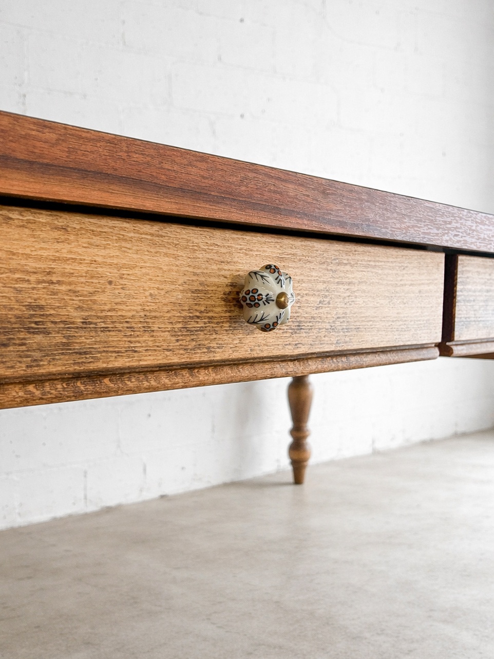 - > バイオマーブル天板 ろくろ足ダイニングテーブル 1800×1050 引出し6杯付属