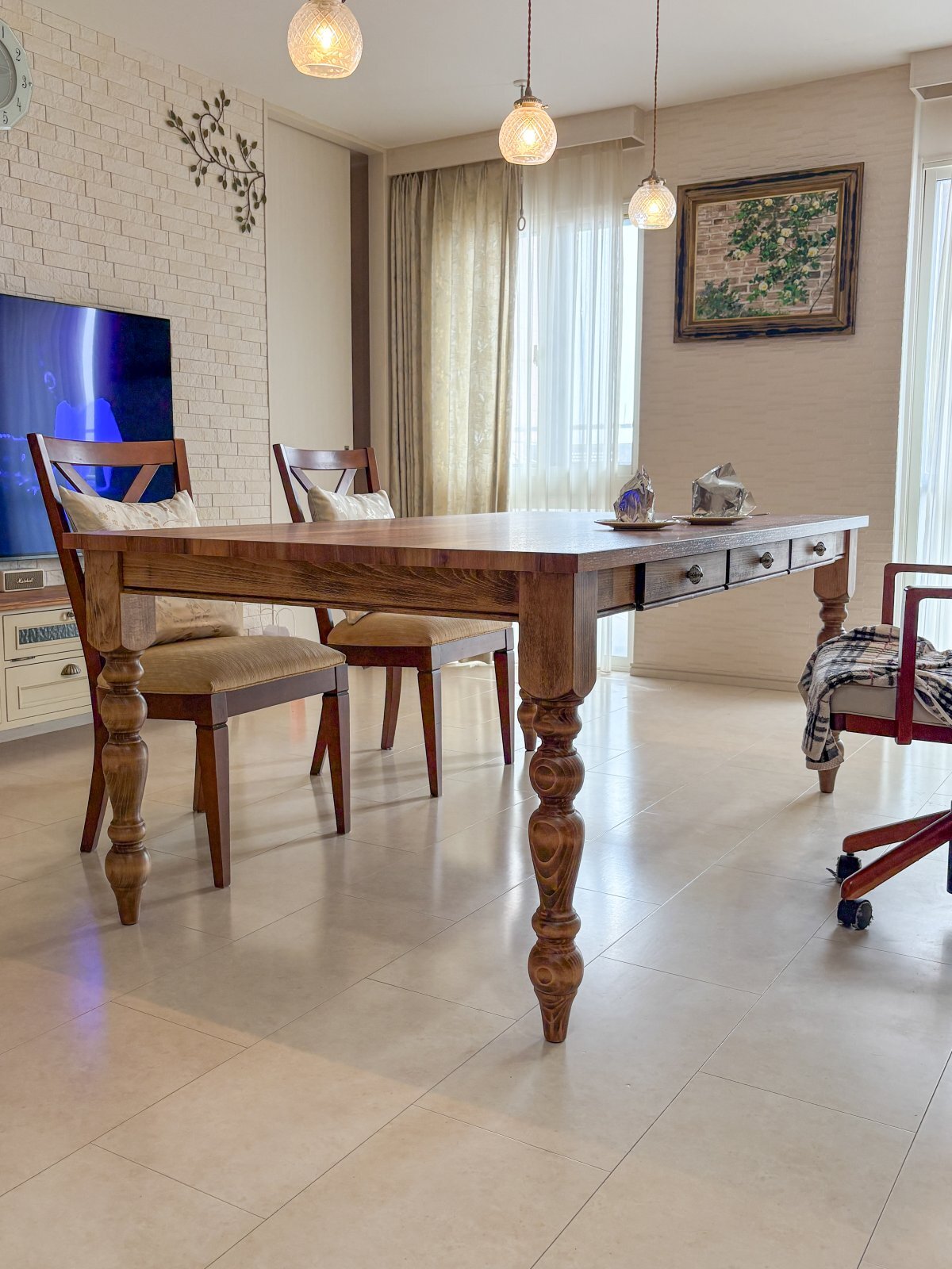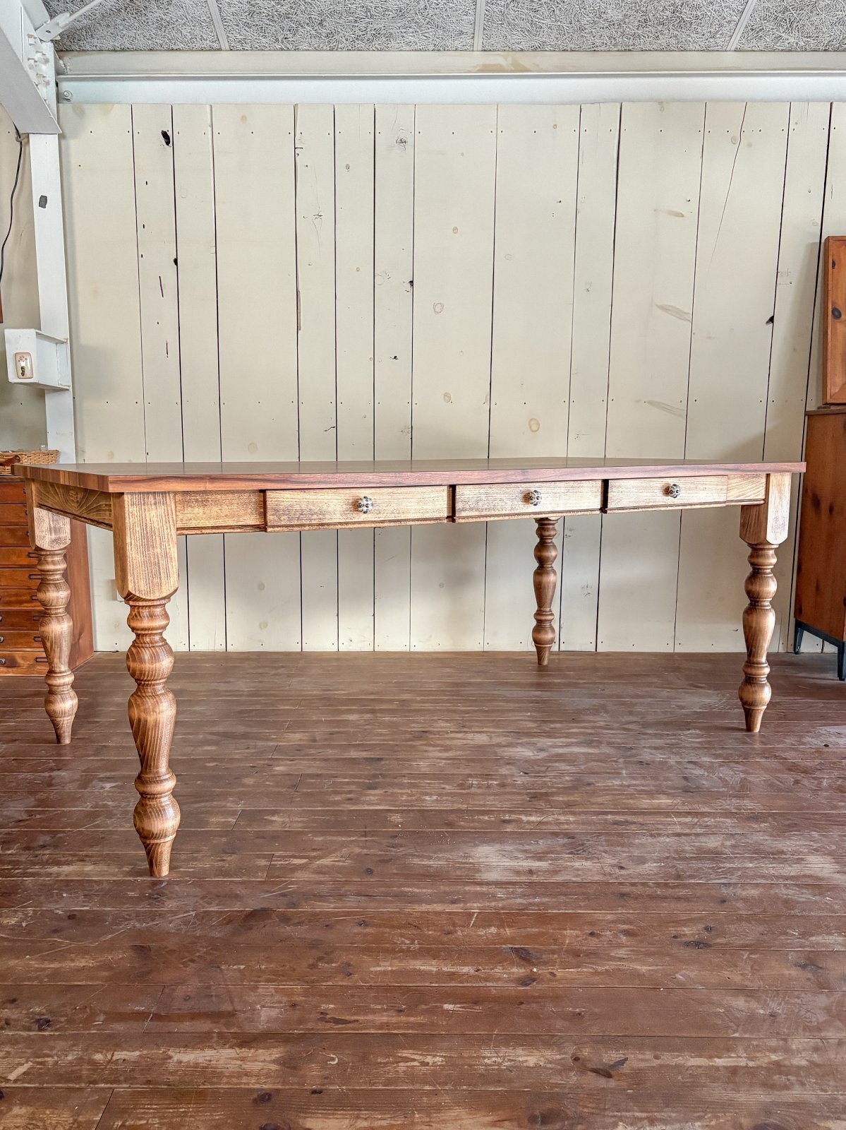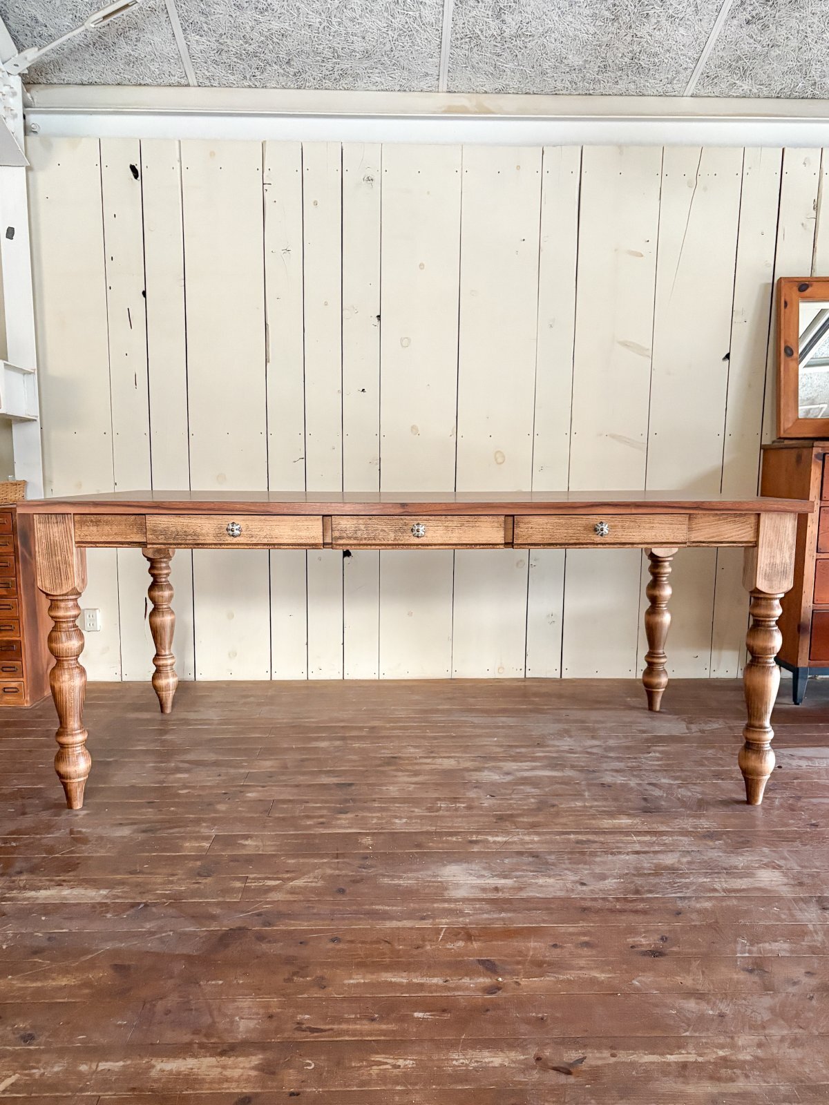 アメリカンな雰囲気のダイニングテーブルに仕上がりました。