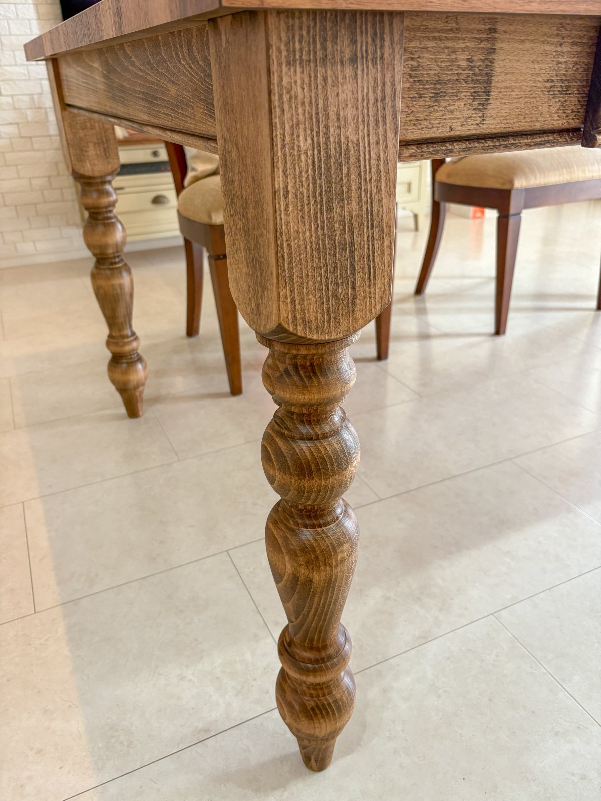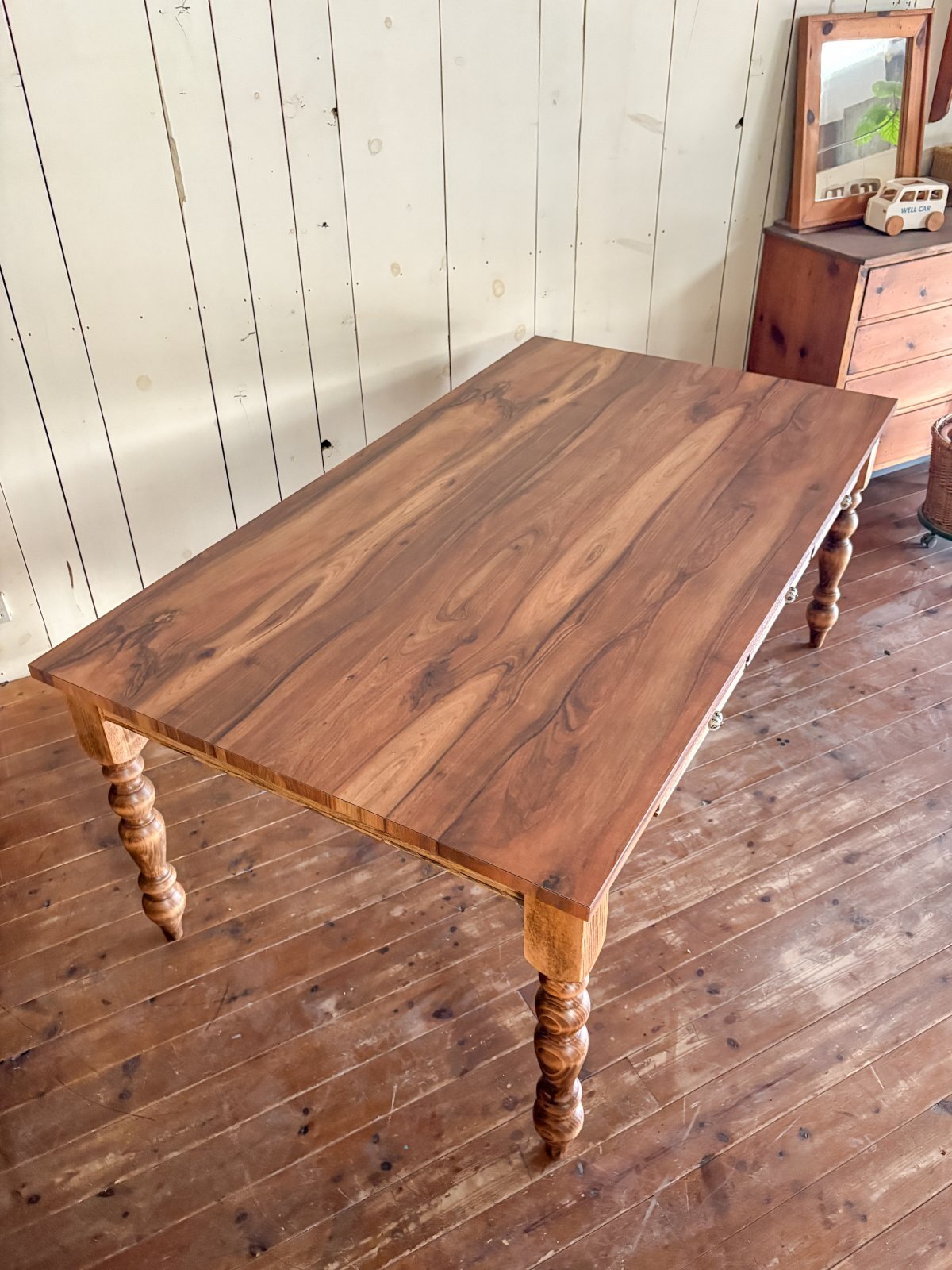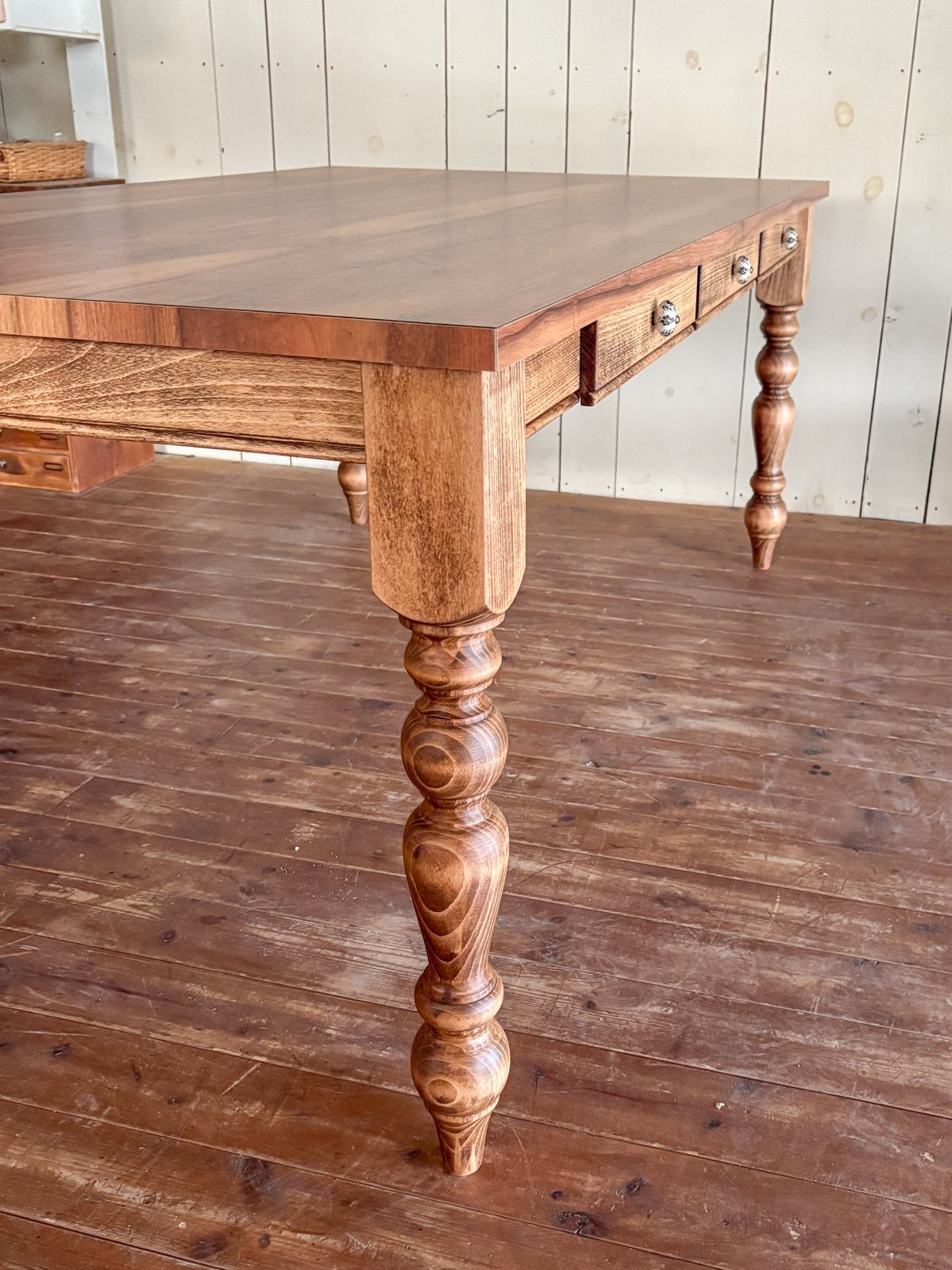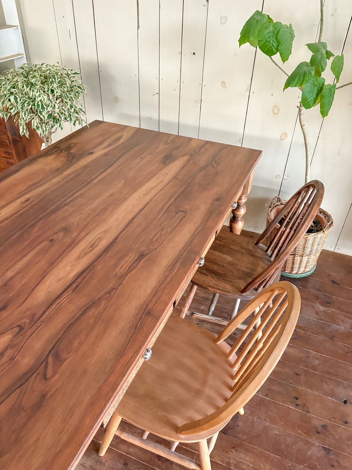 アメリカンな雰囲気のダイニングテーブルに仕上がりました。