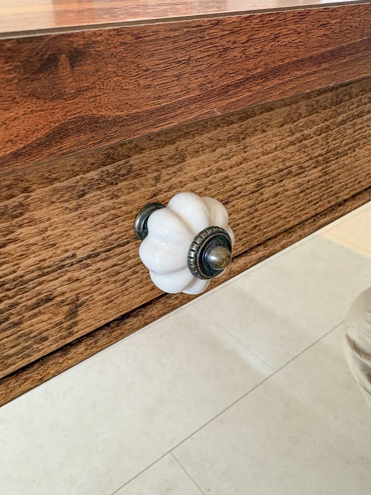陶器の取っ手はオーナー様に選んでいただきました、その他真鍮取っ手も選べます。