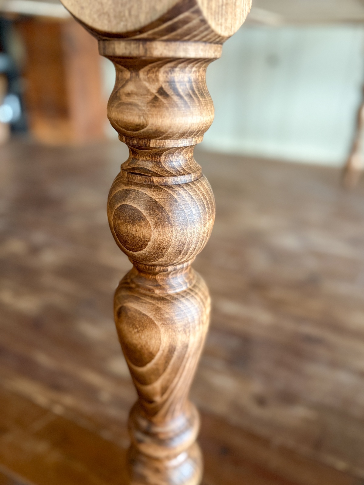 写真は太く重厚感がある「カントリー」、熟練の職人が手彫するろくろ足で様々なデザインをご用意しております。