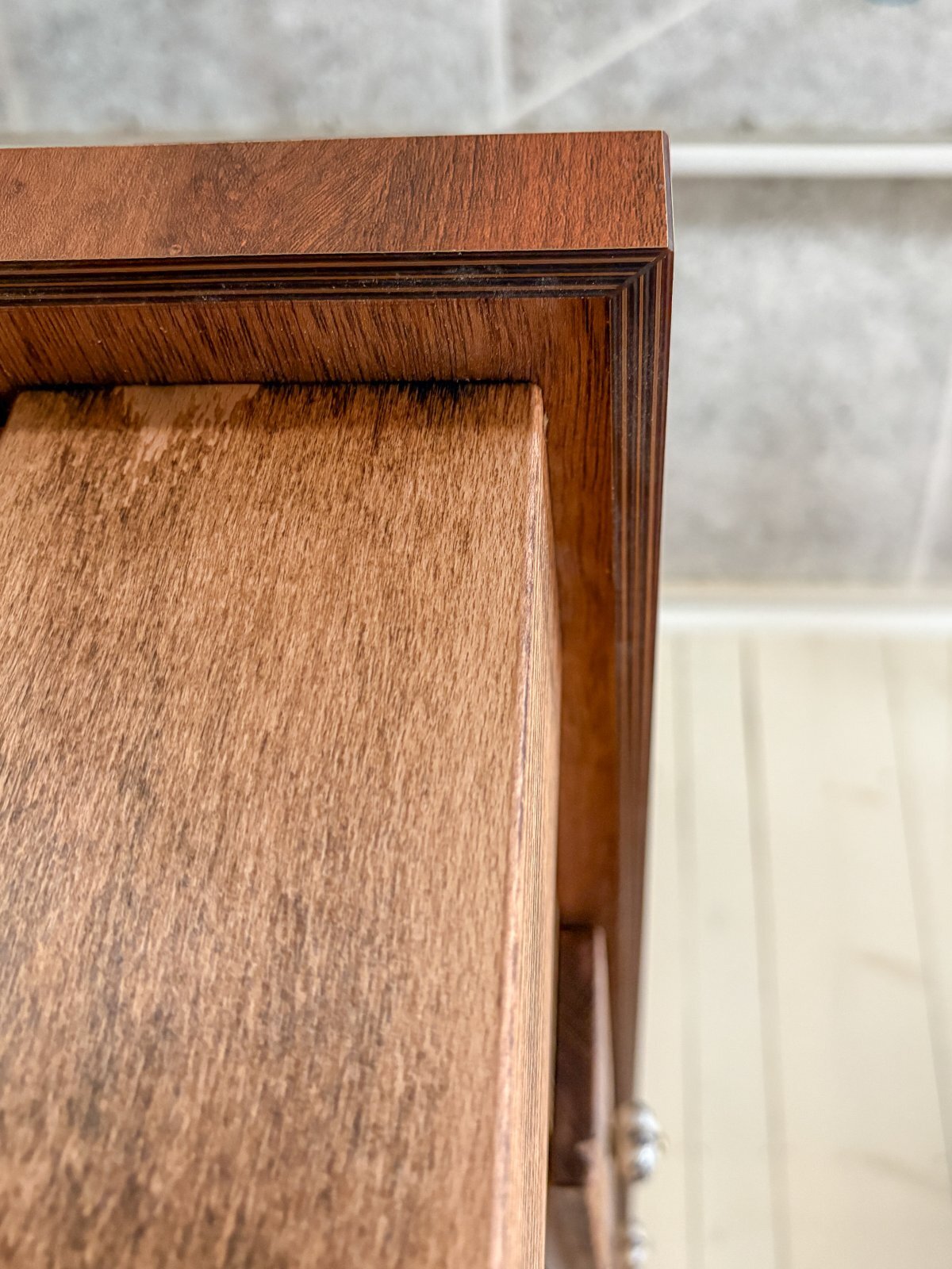 (4)無垢板を使っていますので、お使いのうちに木の反り・割れ・痩せ・節抜け・塗装割れなどが発生します。 お手入れにより発生を遅らせることが出来ますが、いずれは起きてくるものです。 無垢家具の特徴とご理解下さいませ。