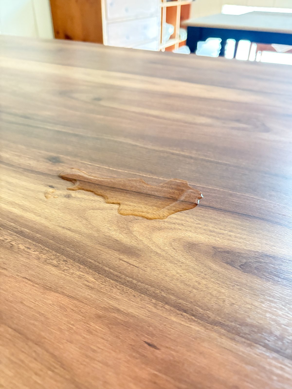 写真は表情豊かな「アーモンドウッド柄」のバイオマーブル天板。