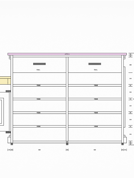 ■カウンターサイズ : W1500+スイングドア470 D880+荷物棚130 H940mm