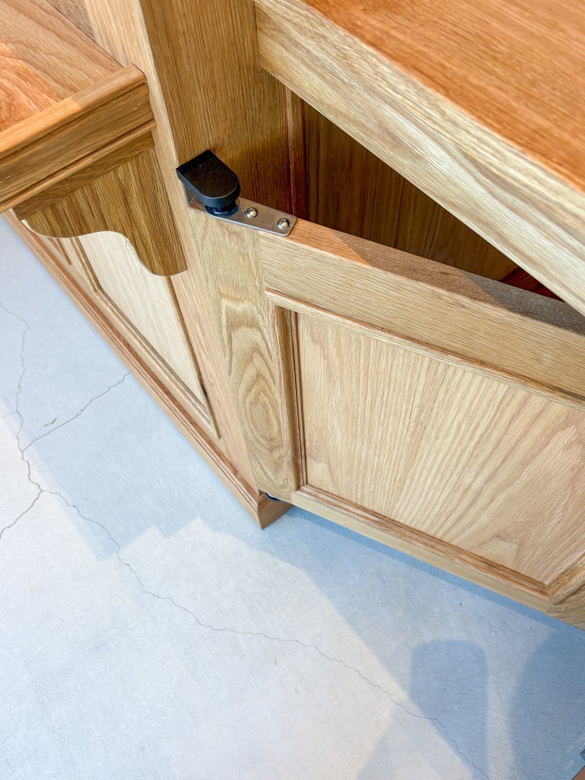 スイングドアの上の作業テーブルは、繁忙期以外は取り外しが出来ます。