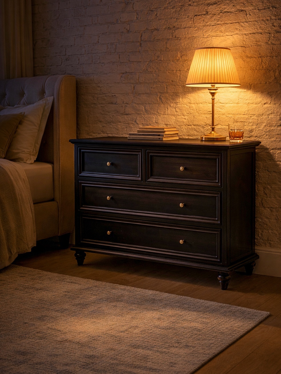 ベッドサイドチェスト、リビングのサイドボード、廊下のコンソールなど様々な場所で活躍します。