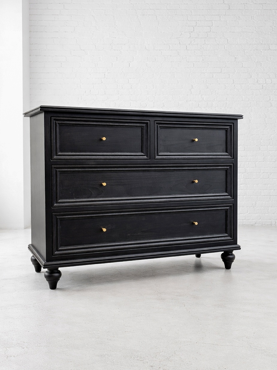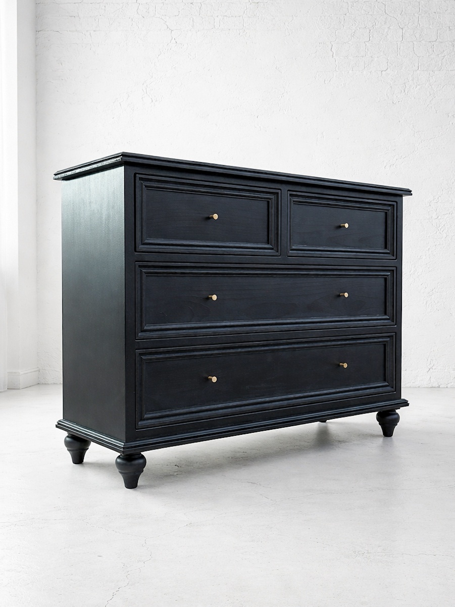 アンティーク調3段チェスト4dw (ブラック・ろくろ足)W1000