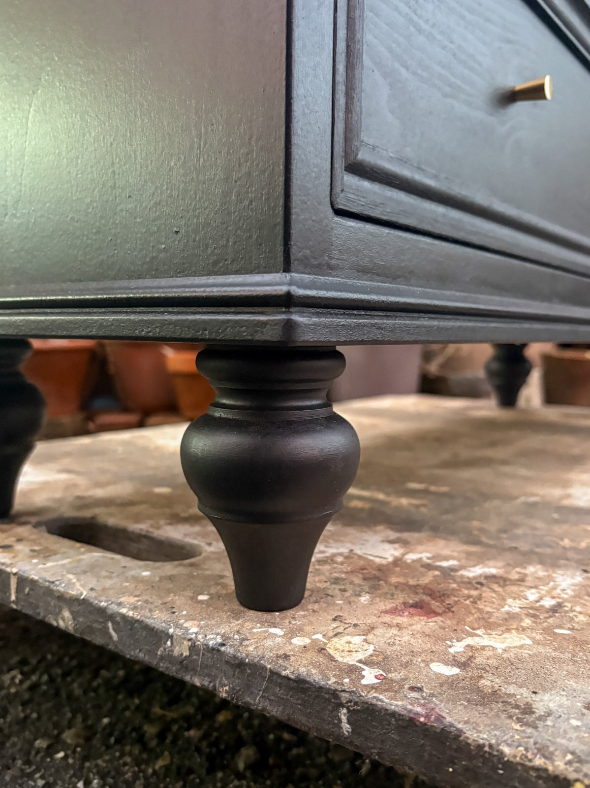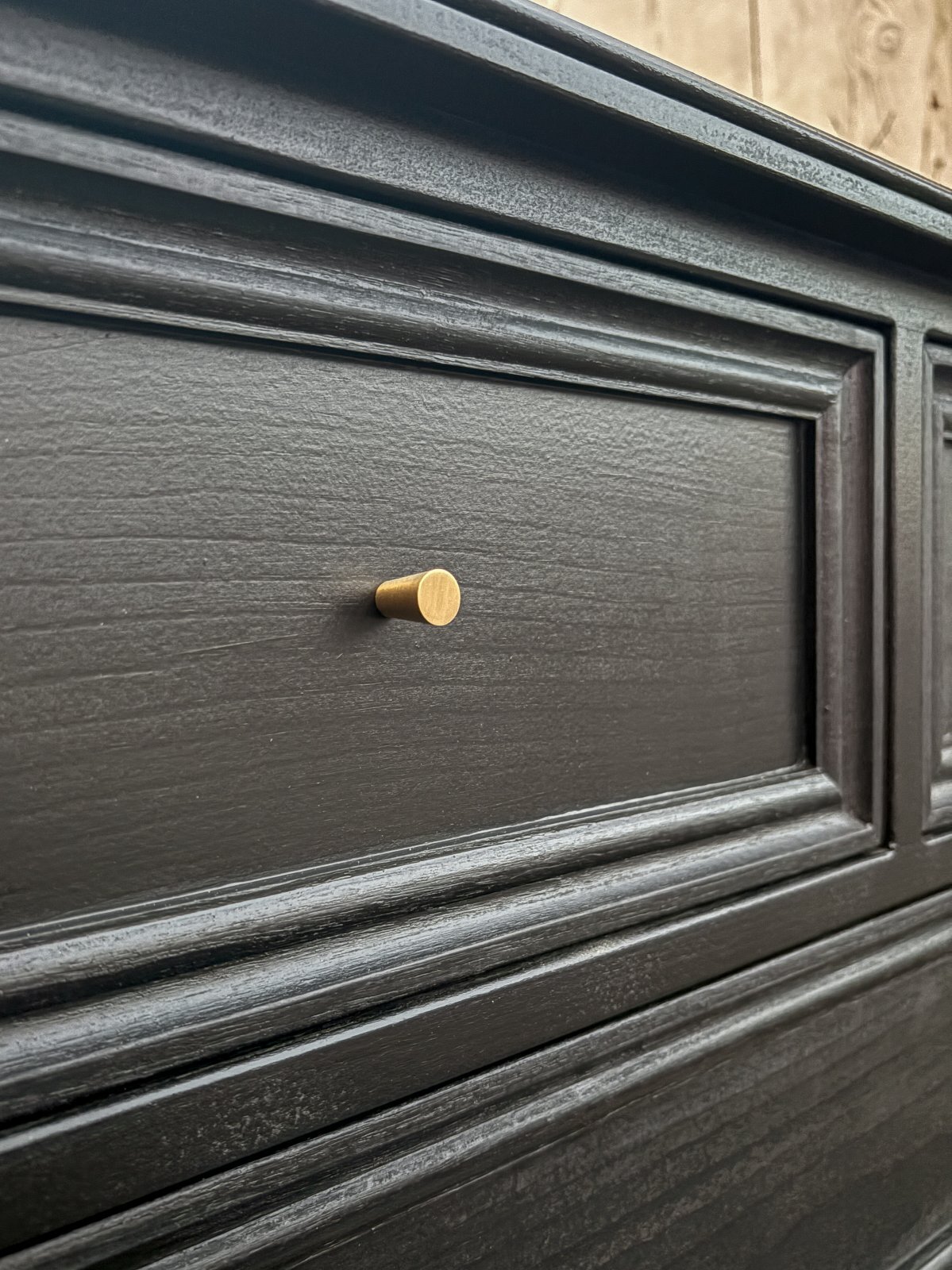 木目がうっすら透けて見えるブラックペイント。