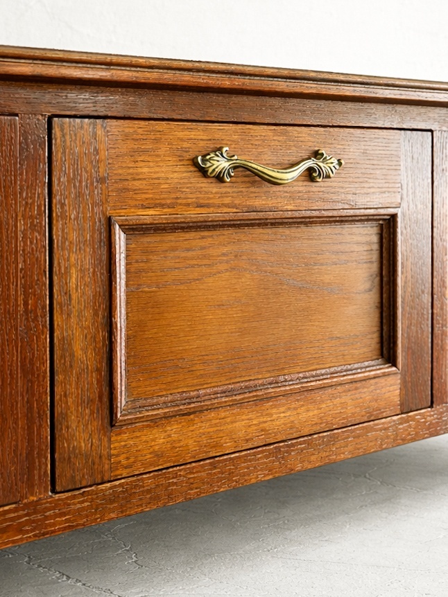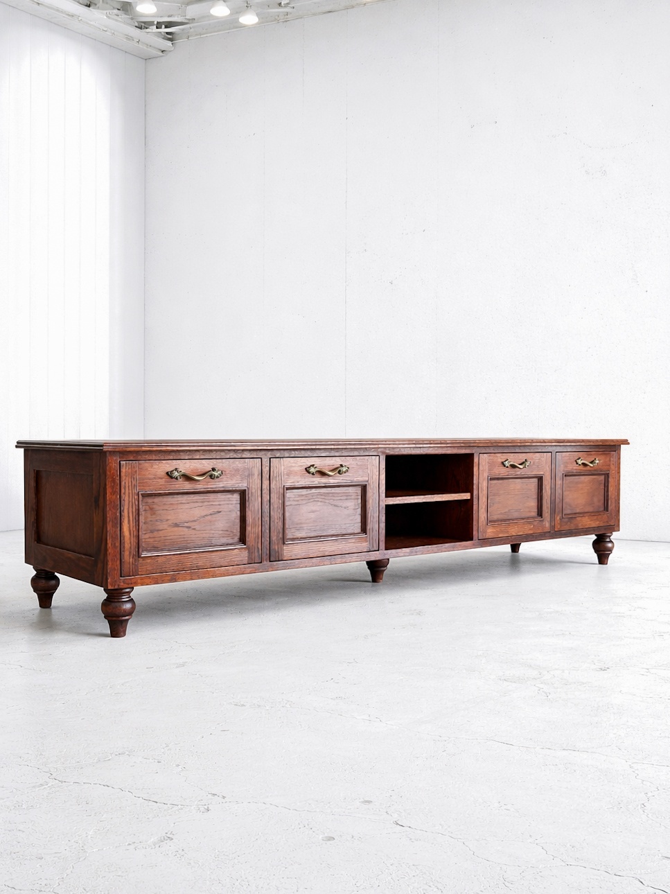 レッドオーク材を使った、クラシックアンティーク調デザインのテレビボード。