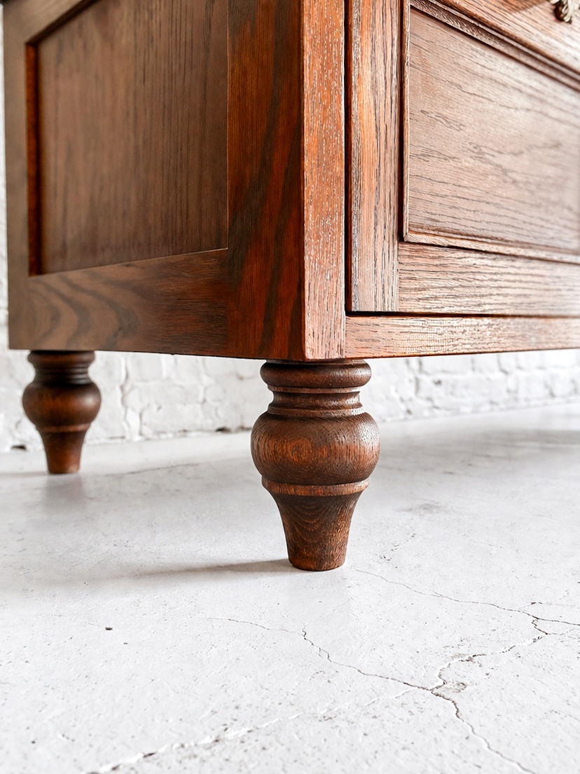 細部に施したモールディング加工もオーク材から削り出し、アンティーク感と高級感を漂わせます。