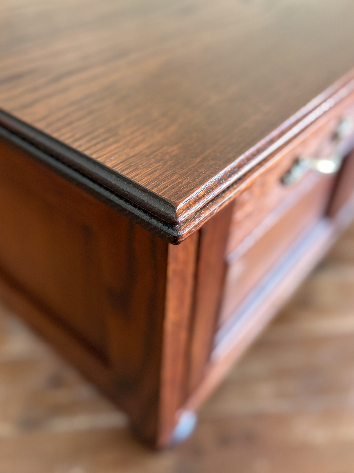 英国アンティーク家具を彷彿とする艶のあるダークカラーのオーク家具です。
