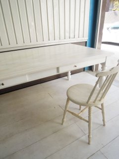 シャビーホワイトな天板が目をひく、ターンドレッグダイニングテーブルです。