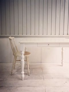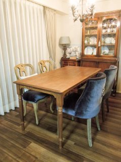 木目が透けるシャビーホワイトの天板、エレガントな佇まいのダイニングをお楽しみ下さい♪