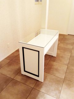 ■商品名 : ガラストップ片袖デスク1000 引出し付き <ネイルサロン・アンティークドレッサー>