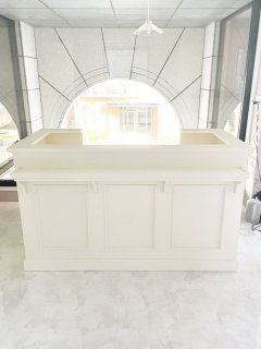 細部までモールディングで装飾したアンティーク調デザインがかわいいレジ台。