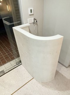 丸いなみなみの化粧板。こちらのカラーは「特注ラベンダー」。