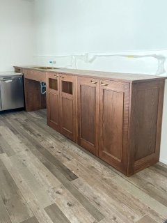 お店のエリアを一面間仕切る腰壁のようなカウンターテーブルなど、特注店舗家具の製作お任せください。