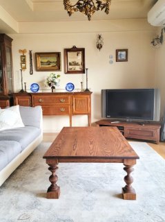 写真はW1200×D700mmの大きなローテーブルで、お食事もできるサイズ。