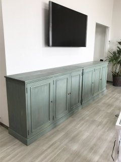 店舗側の収納と、厨房を隠す背の高い壁として制作させていただきました。