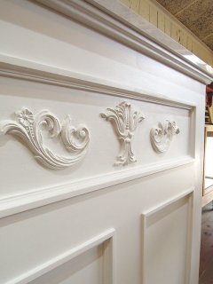 モールディングで装飾したアンティーク調デザインのレジカウンターです。