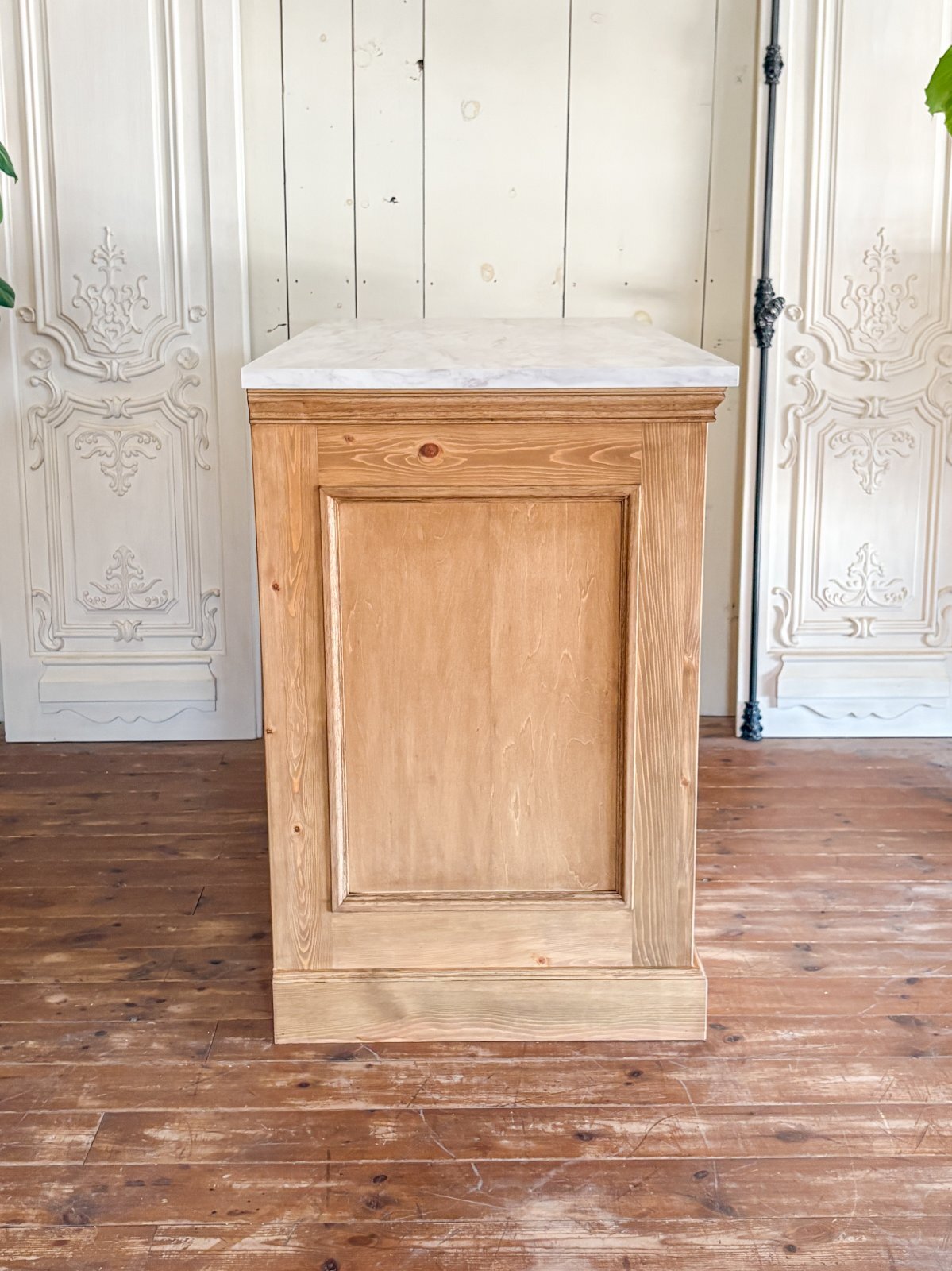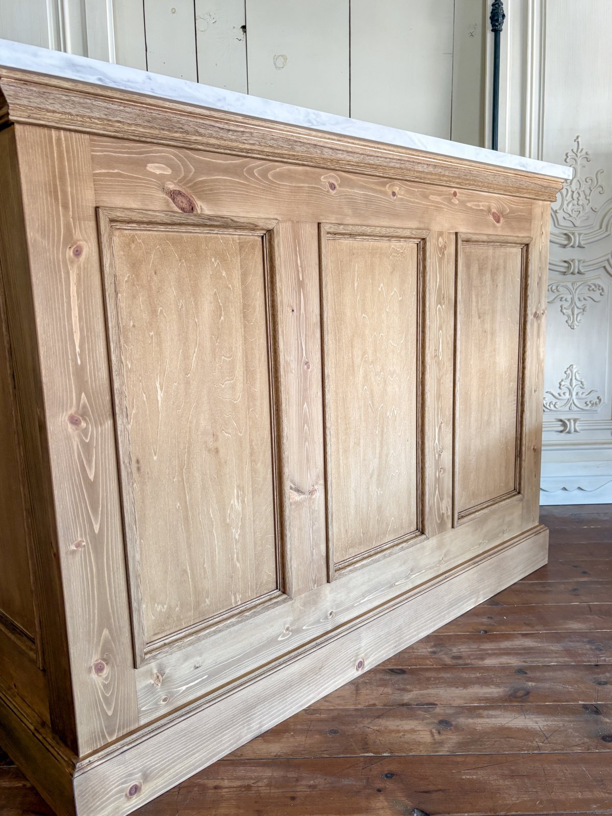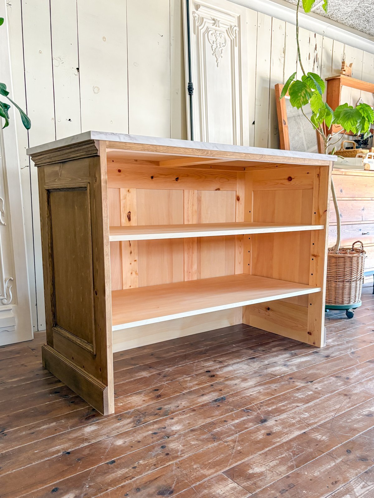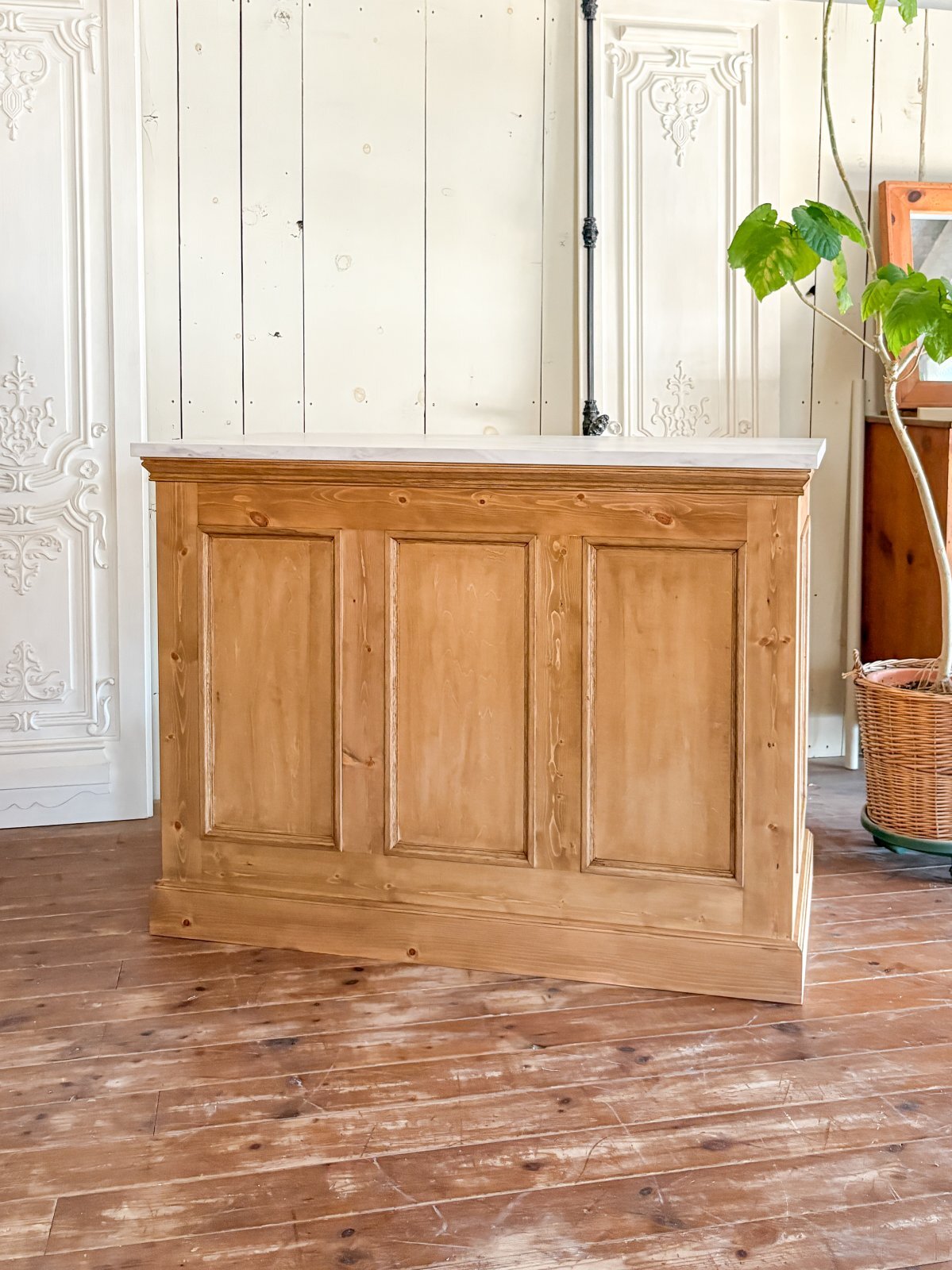 - > オーダーメイドキッチンカウンター159 大理石天板アイランドカウンター (オールドパイン風・W1200)