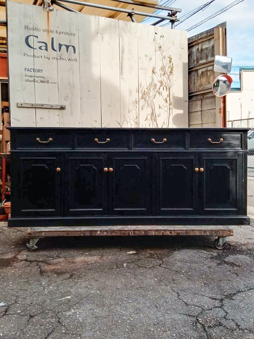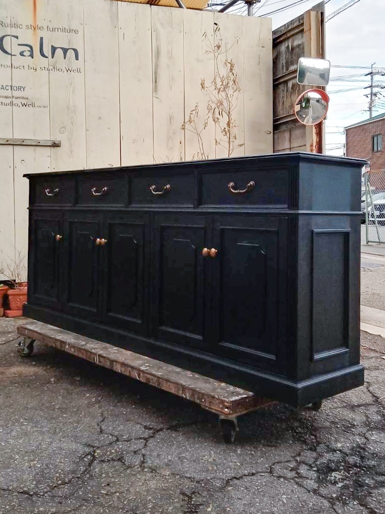 写真のサイズは横幅2218 奥行430 高さ900mm、サイズオーダー可能です。