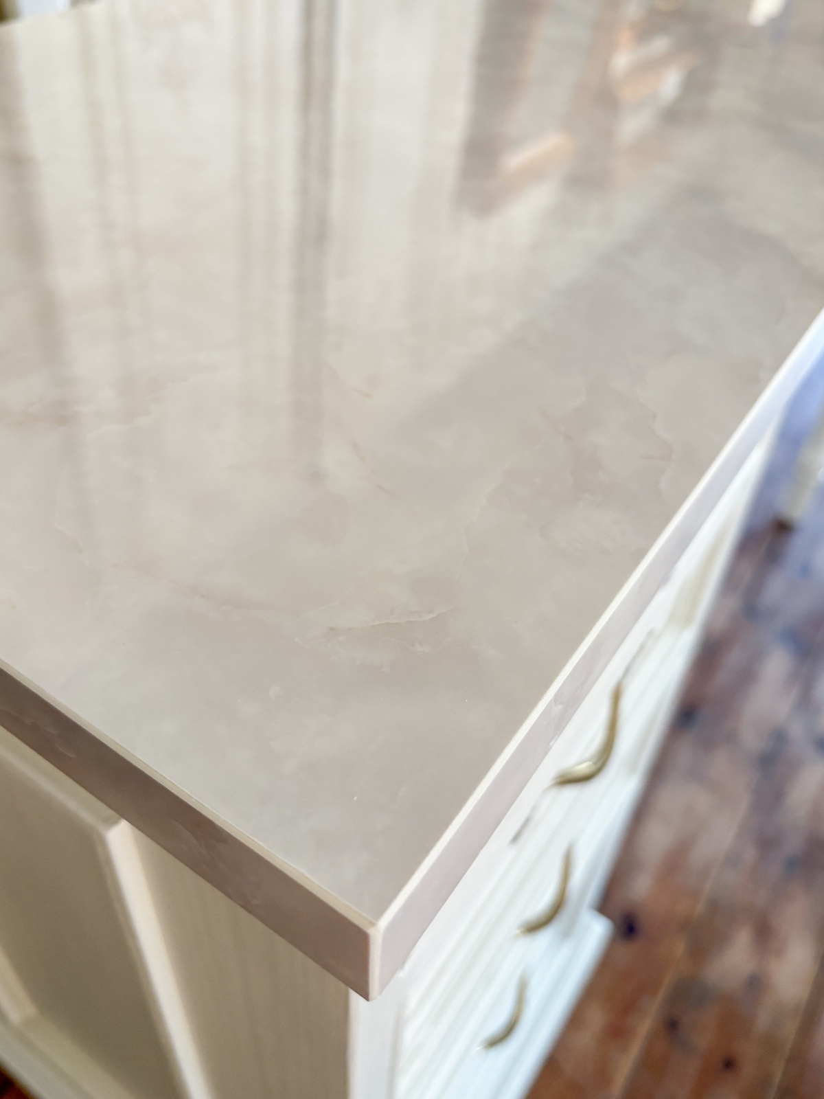 大理石柄のメラミン天板は汚れに強く、アセントにも耐久性があります。
