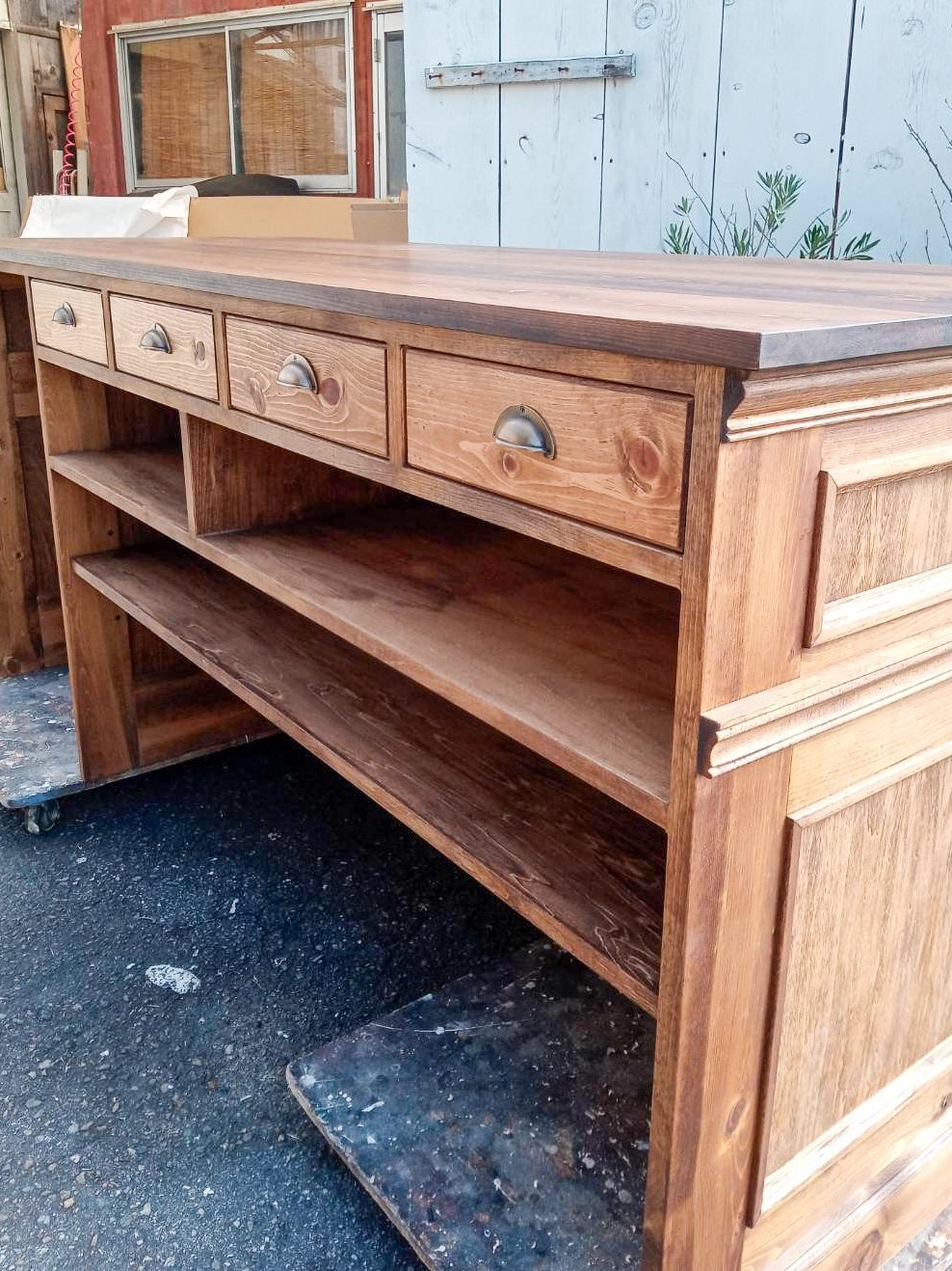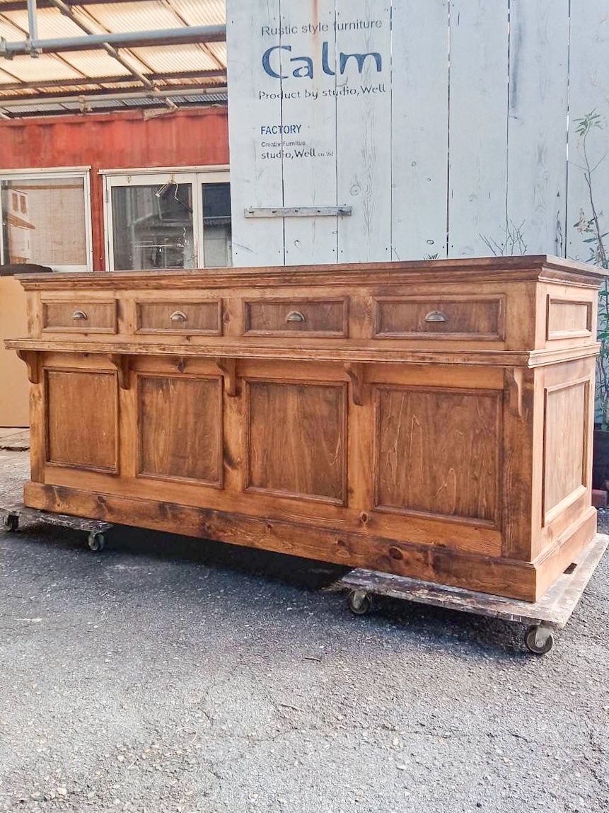 ヨーロッパから輸入したアンティーク家具のような、豪華でいて温かみを感じるウッドカウンターです。