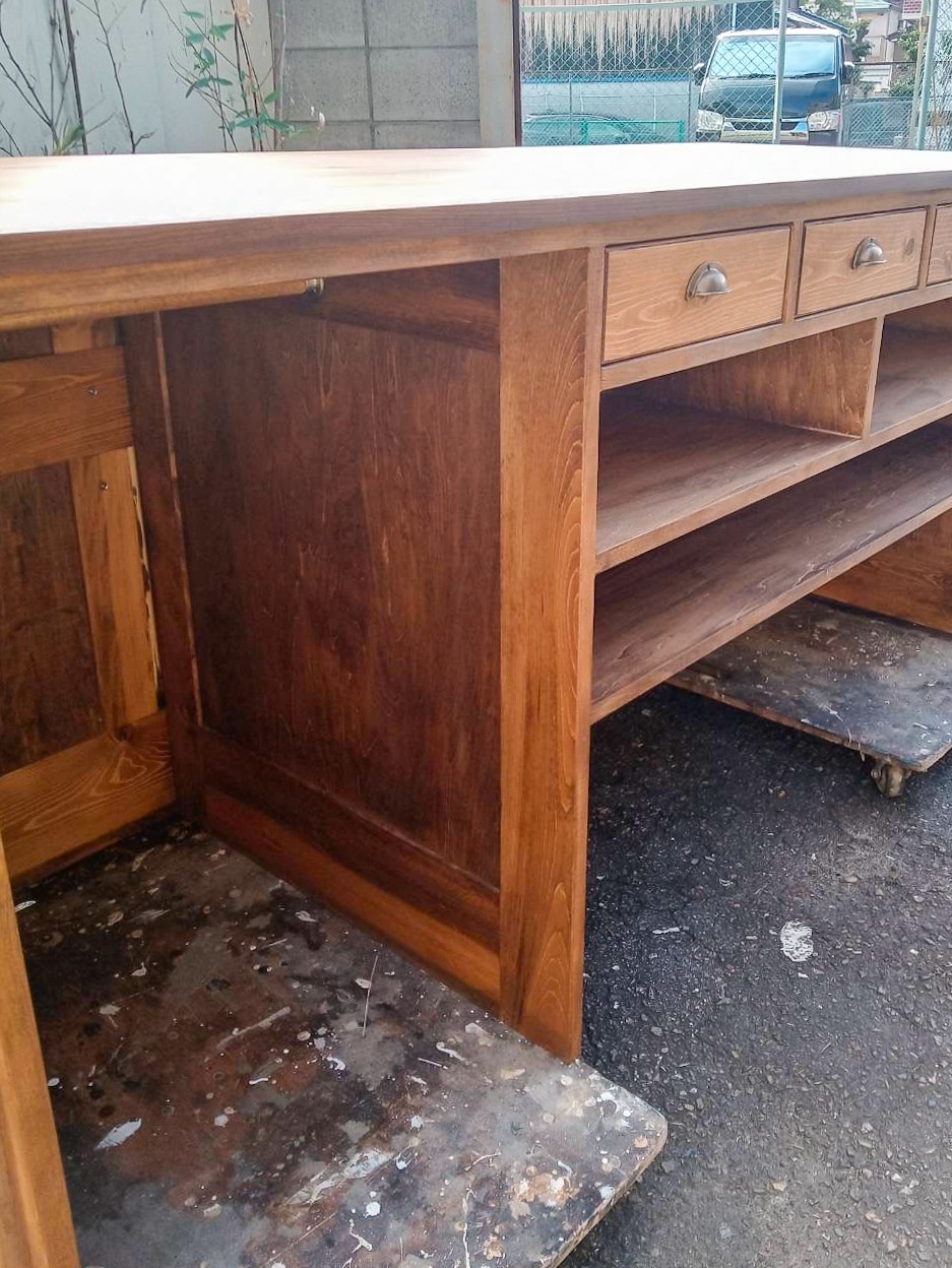 パイン無垢材で作った温かみのあるウッドカウンターです。