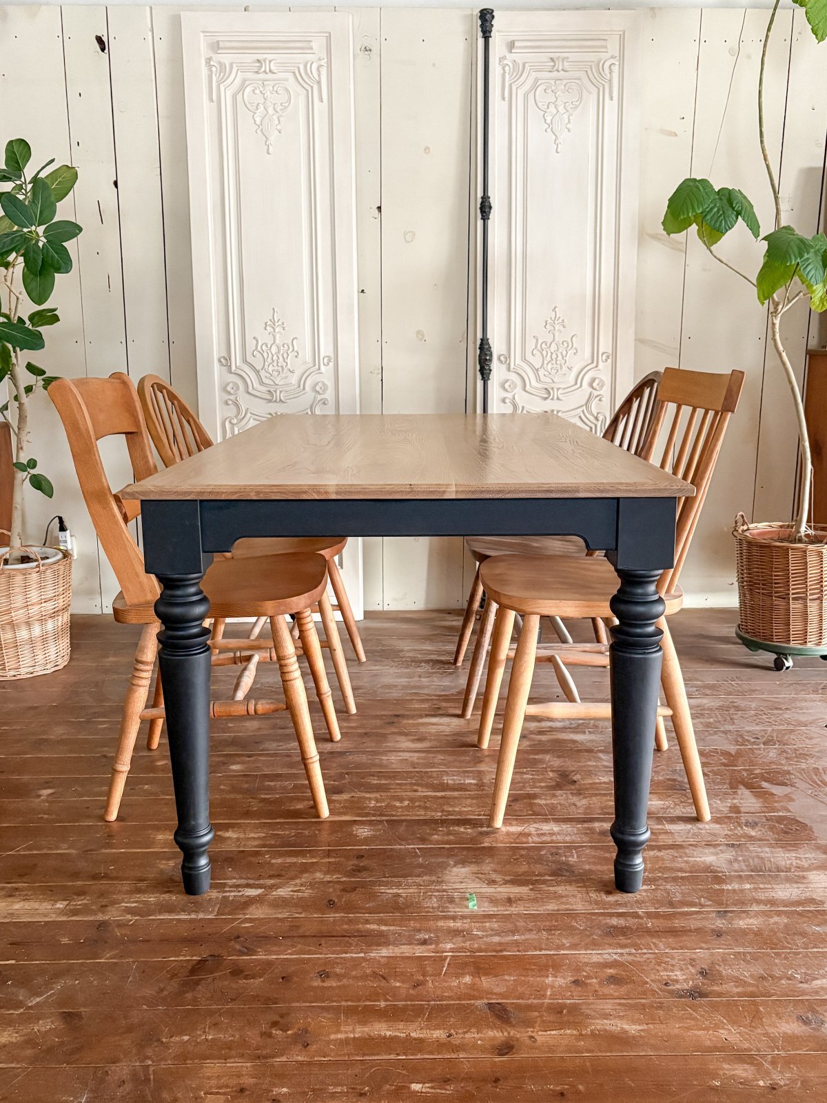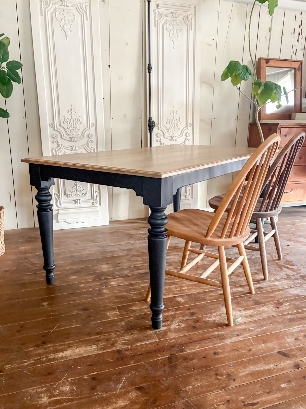 ろくろ足(ターンドレッグ)のおしゃれなダイニングテーブル。