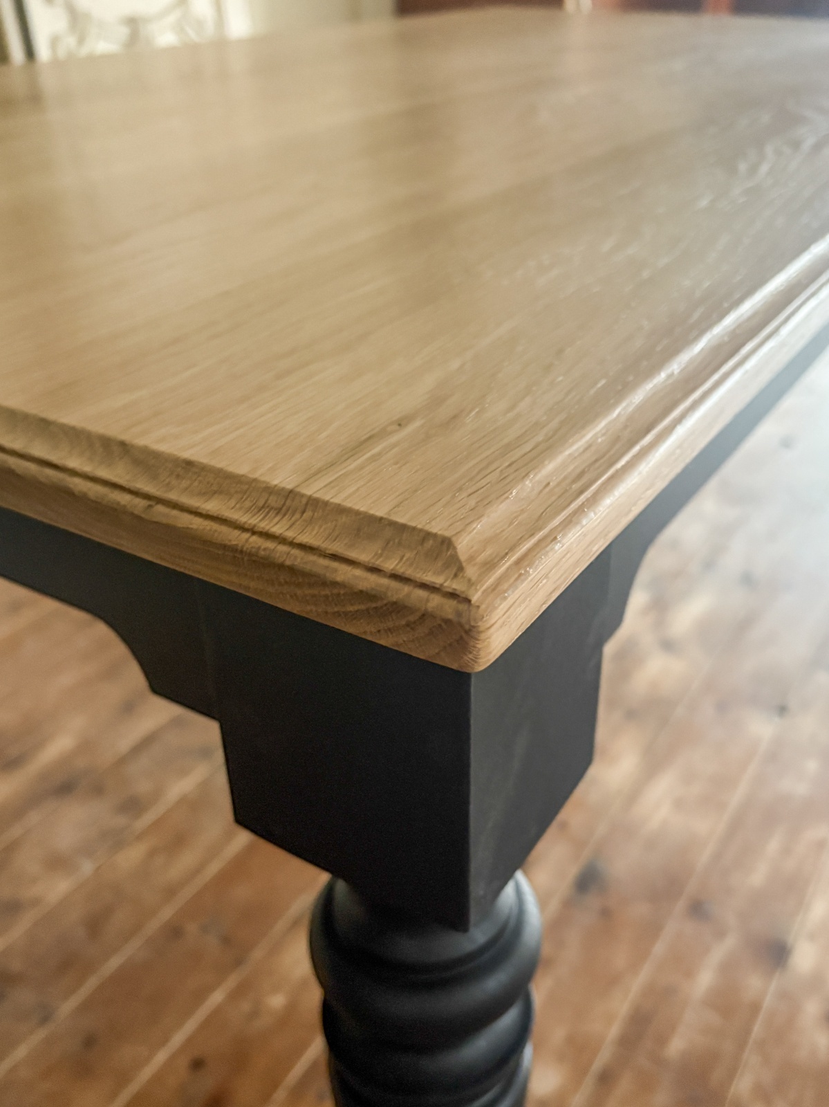 - > オークターンドレッグダイニングテーブル 特注ろくろ脚「TK」 アンティーク調テーブル 足元広めver.