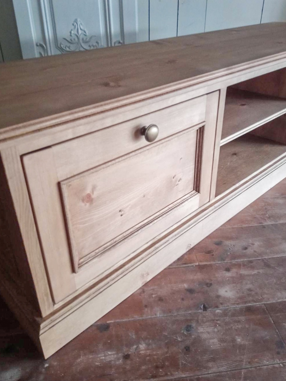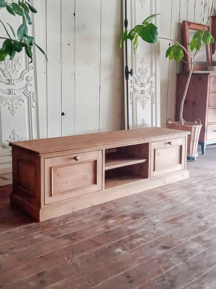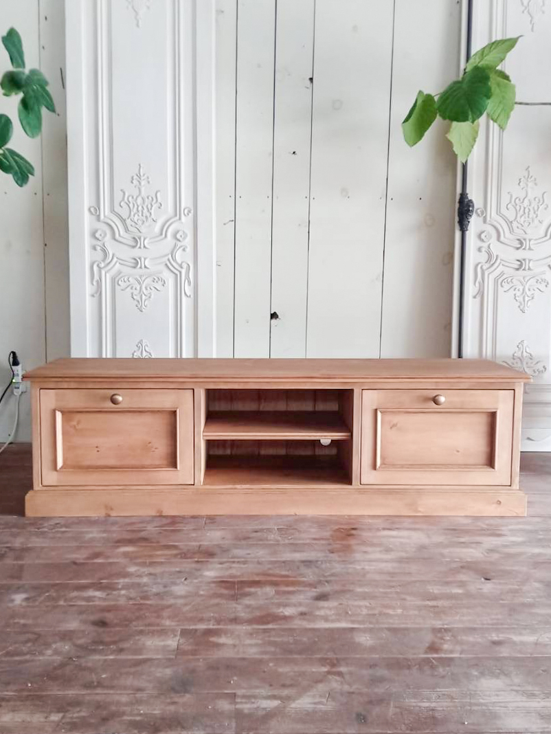 ログハウスや木材を活かしたお家にぴったり、パイン材無垢材のローボードです。