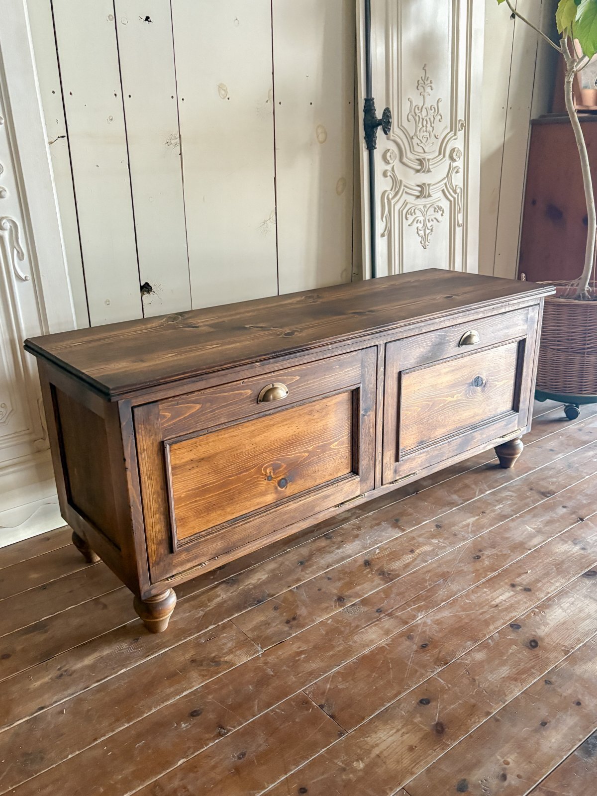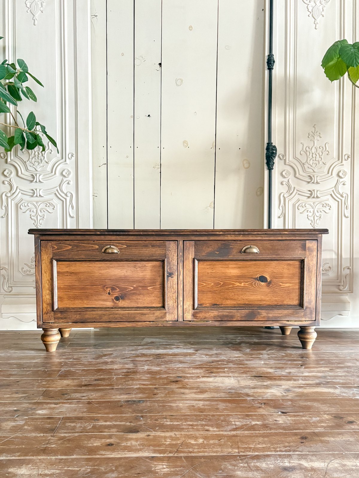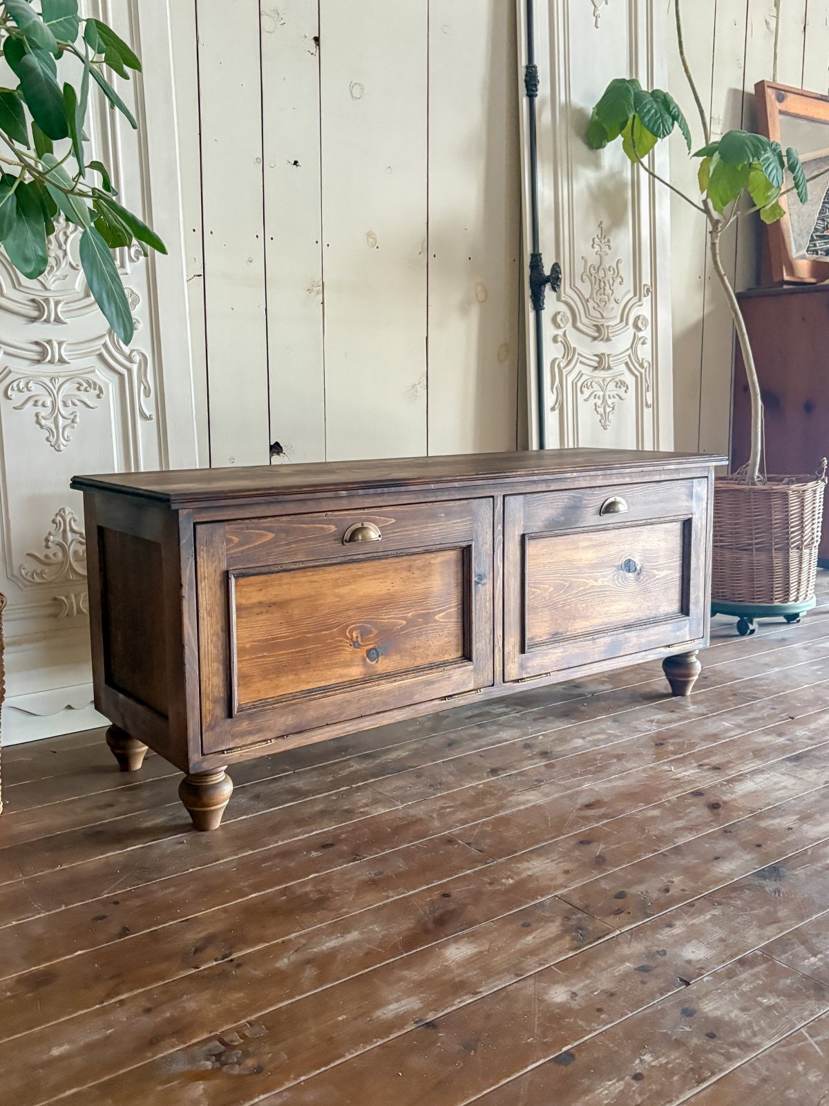 パイン無垢材にキズを付けて古材風に仕上げたローローキャビネットです。