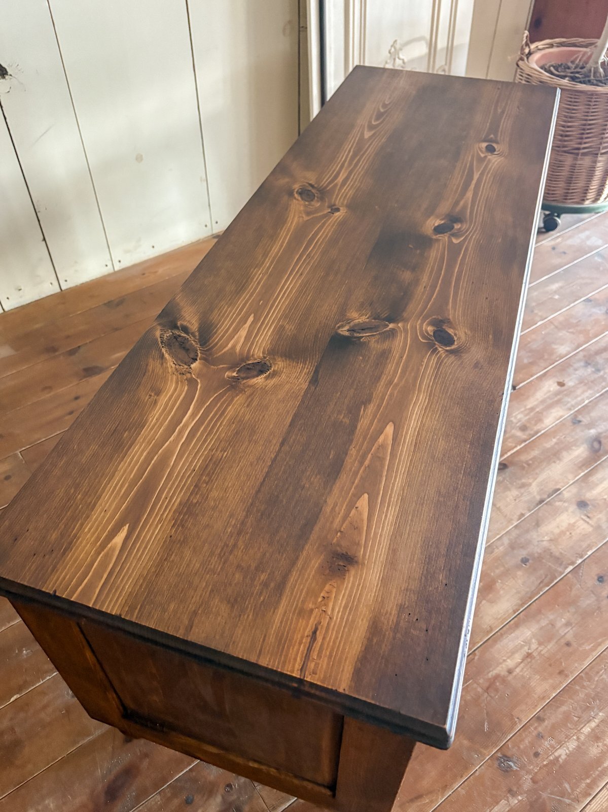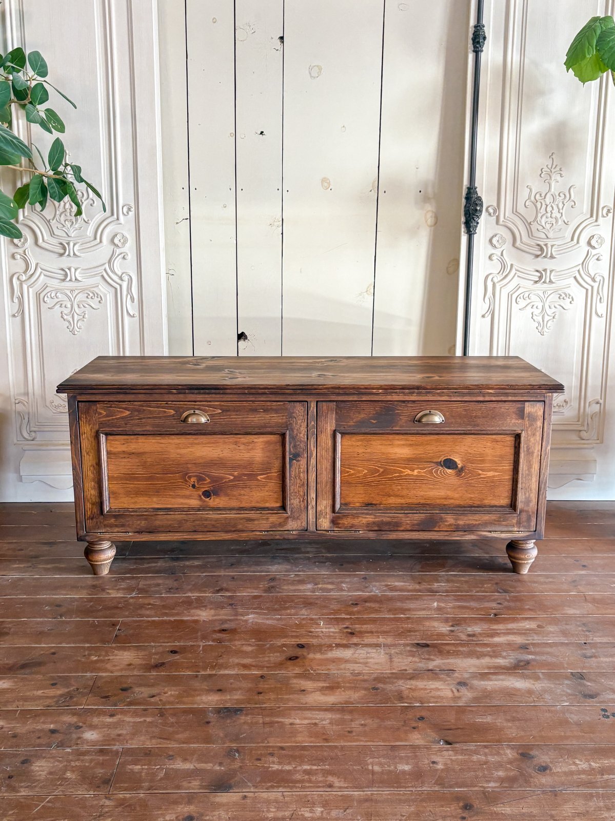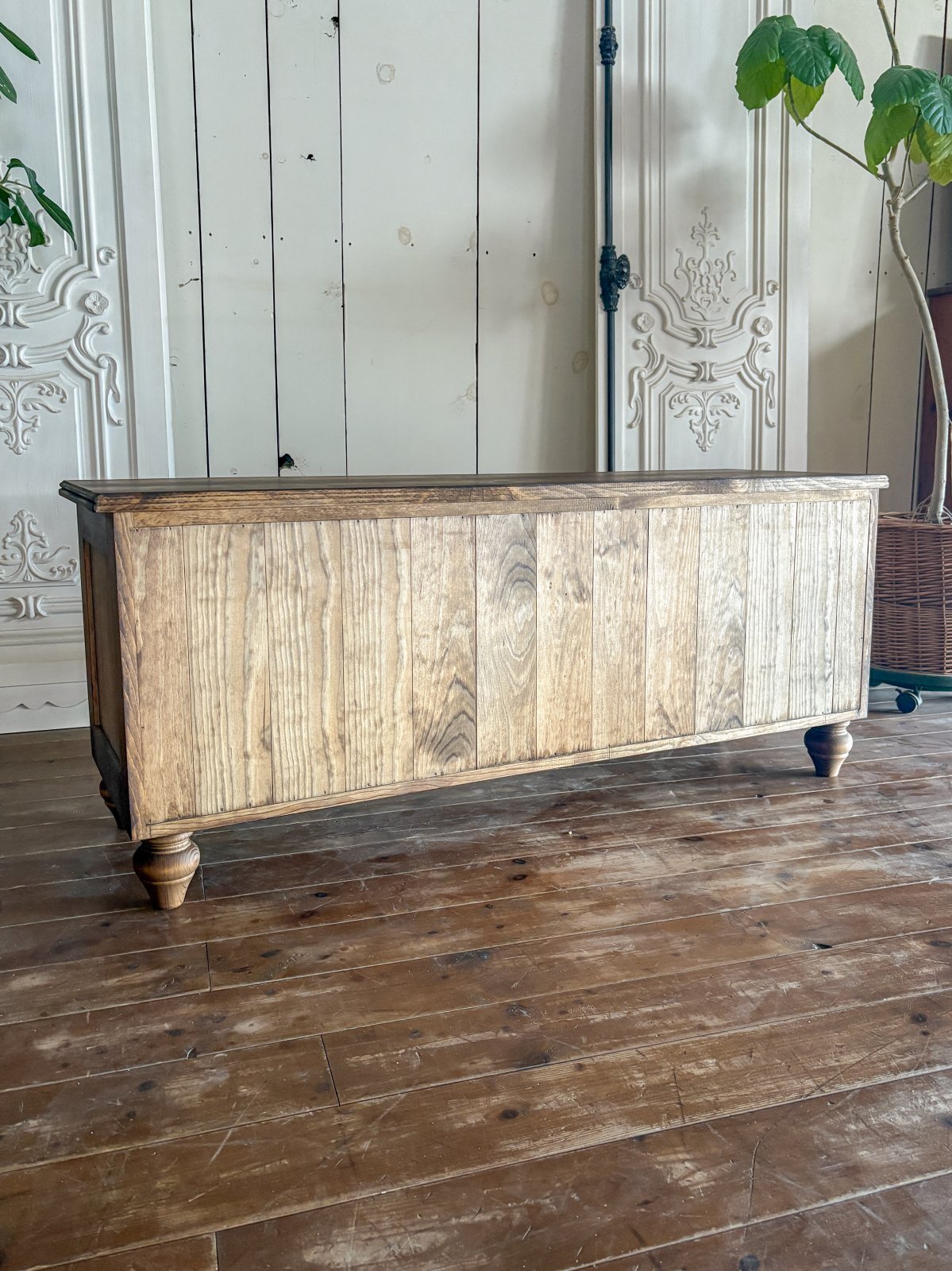 パイン無垢材にキズを付けて古材風に仕上げたローローキャビネットです。