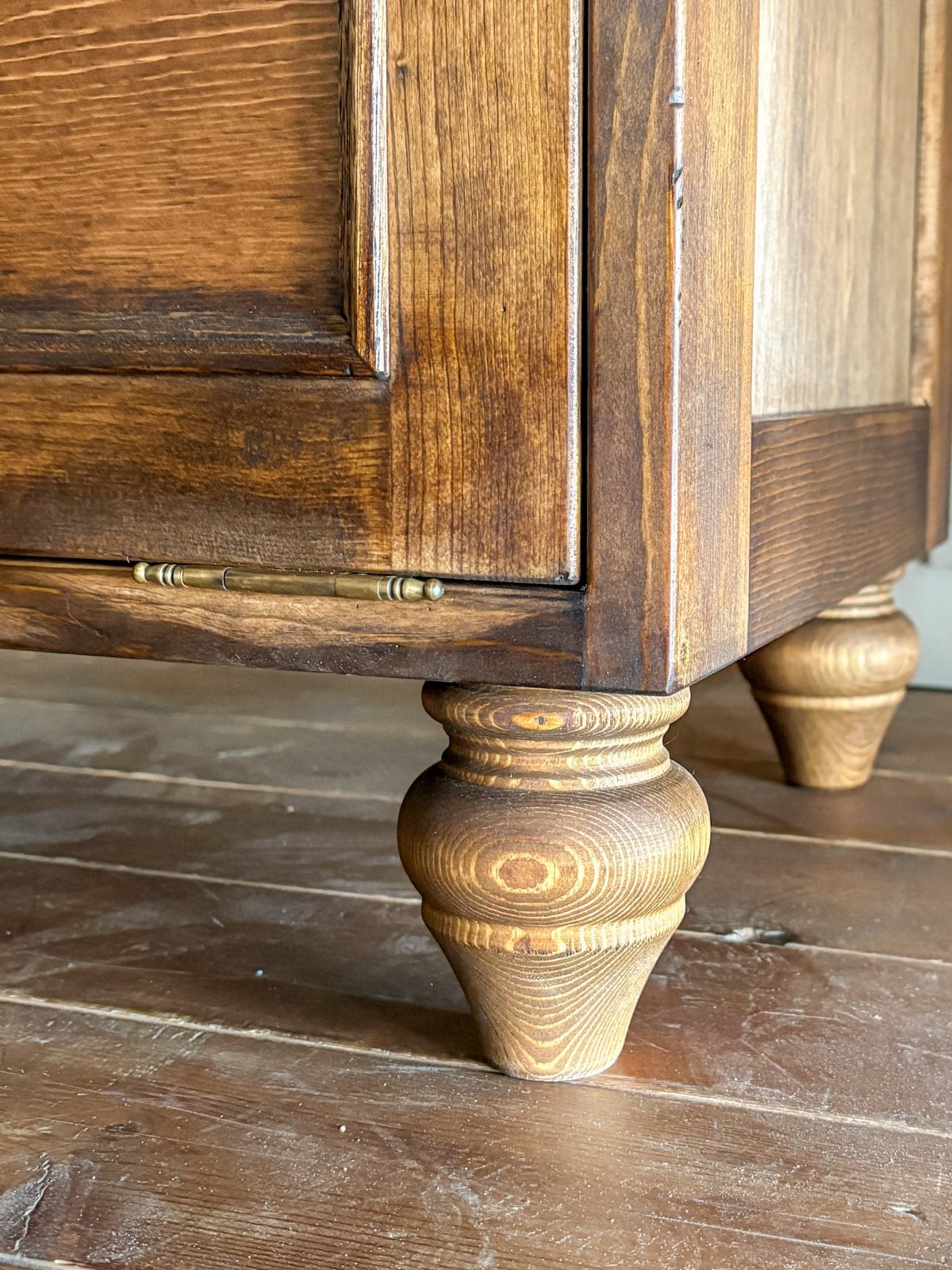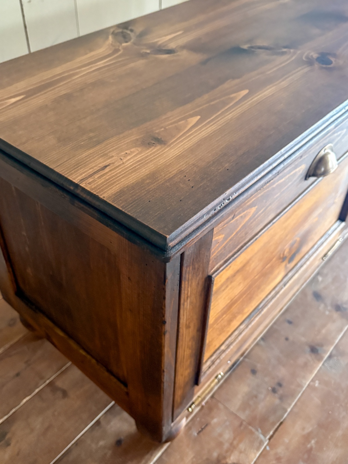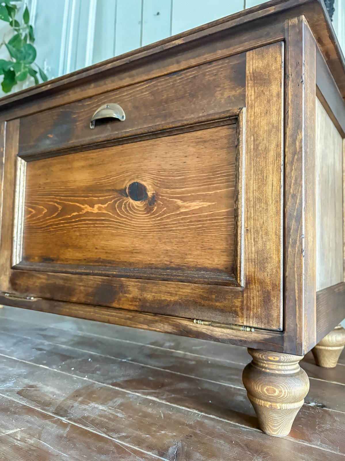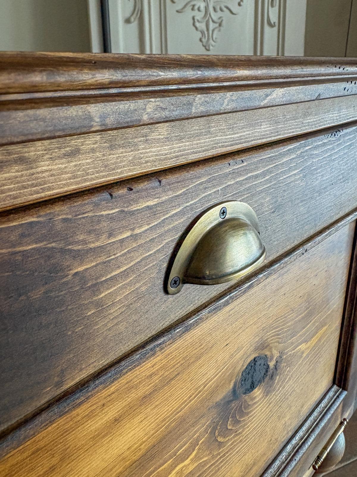 こちらは人気のぶらり真鍮取っ手と、エイジングペイント。取っ手と色が変わるとまるで別物になります!