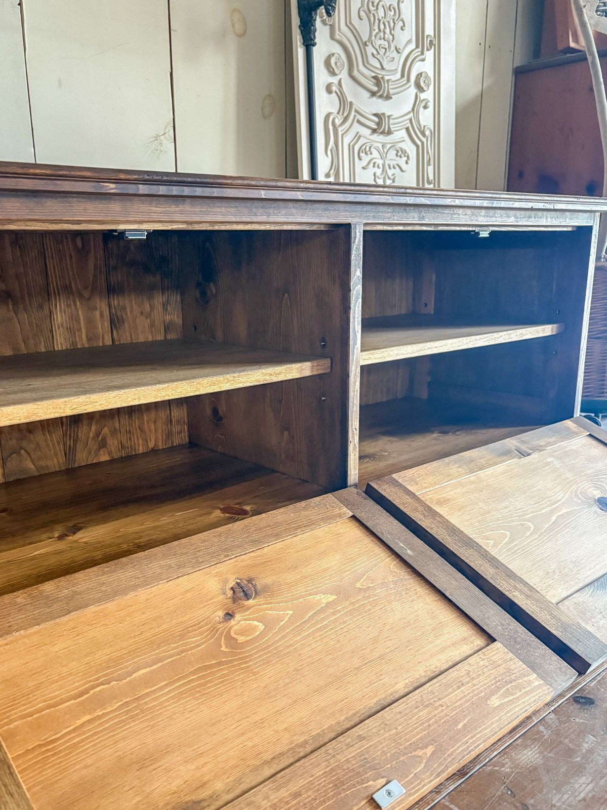 収納は左右に木扉、内側に可動棚を設置しました。