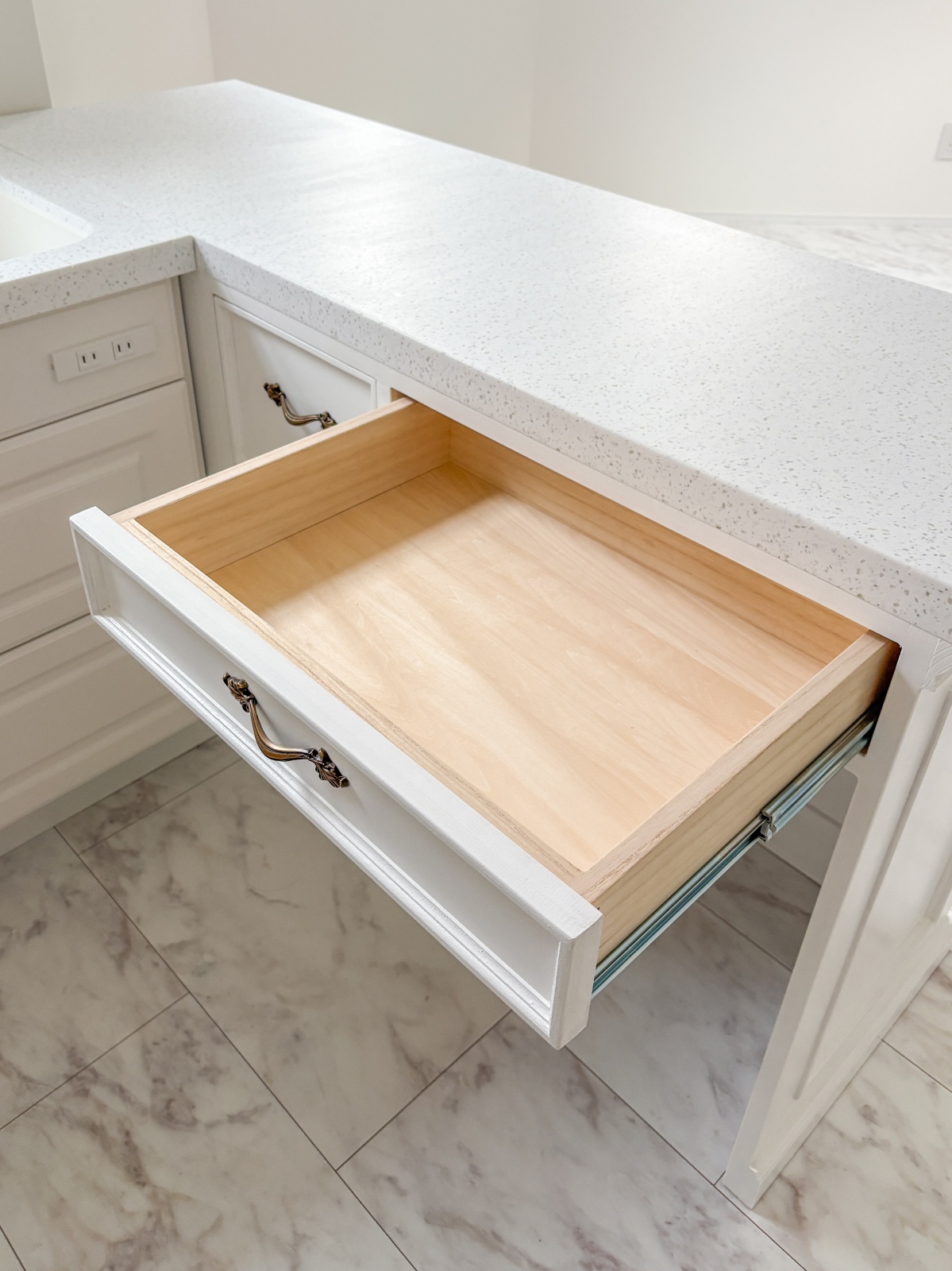 キッチン面は、深い引出しと浅い引出しを設置しました。