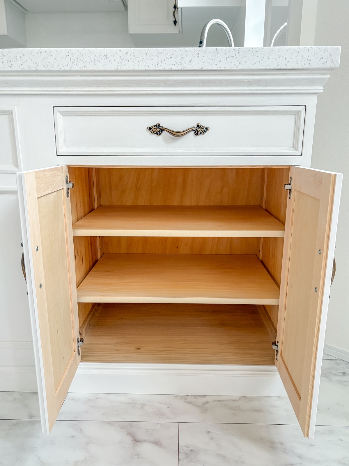 浅い引出しの下には、ゴミ箱を置くスペース。様々なカスタマイズが出来ます。