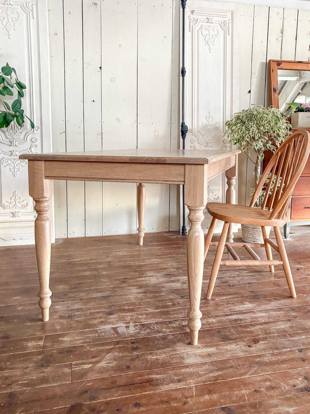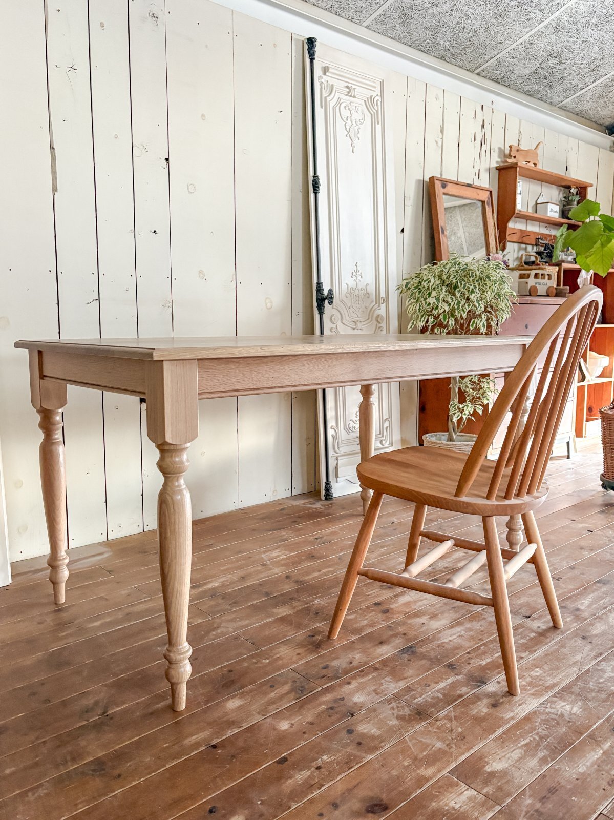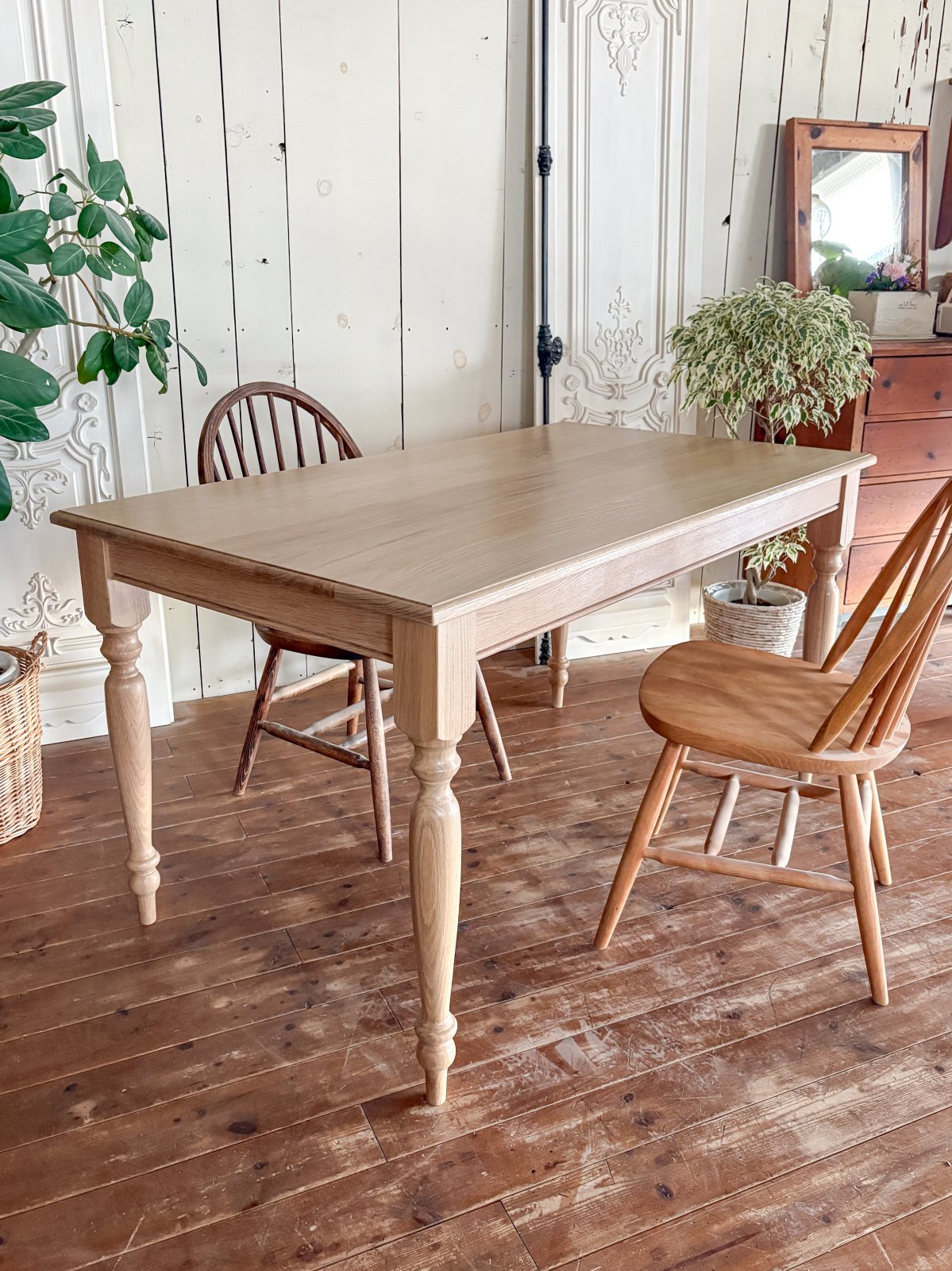 - > オークターンドレッグダイニングテーブル 「特注ろくろ足」 防水ウレタン仕上げ