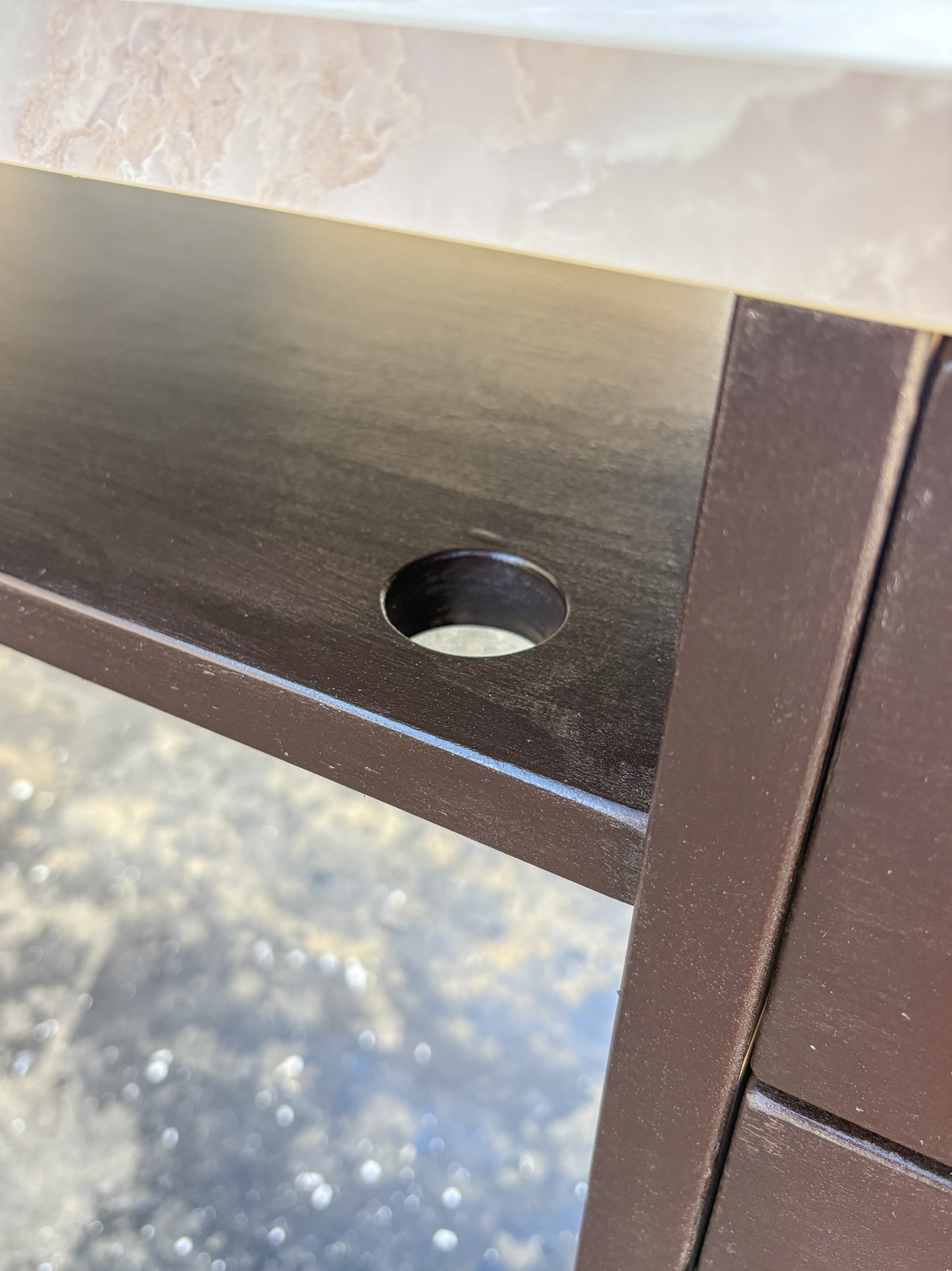 (4)無垢板を使っていますので、お使いのうちに木の反り・割れ・痩せ・節抜け・塗装割れなどが発生します。 お手入れにより発生を遅らせることが出来ますが、いずれは起きてくるものです。 無垢家具の特徴とご理解下さいませ。