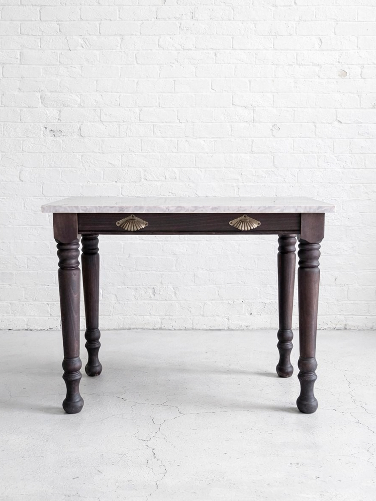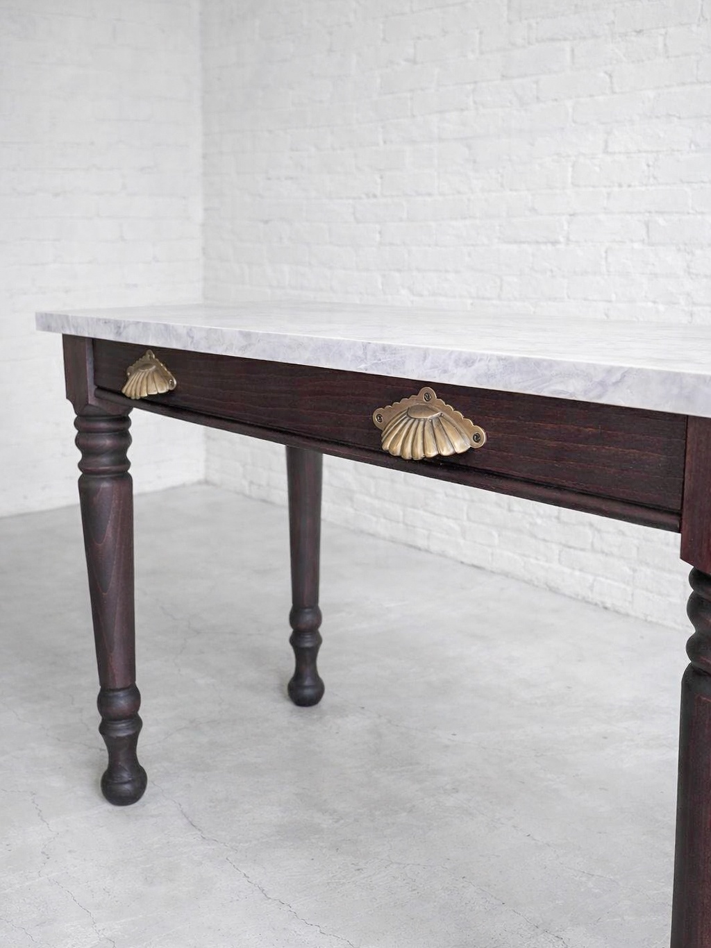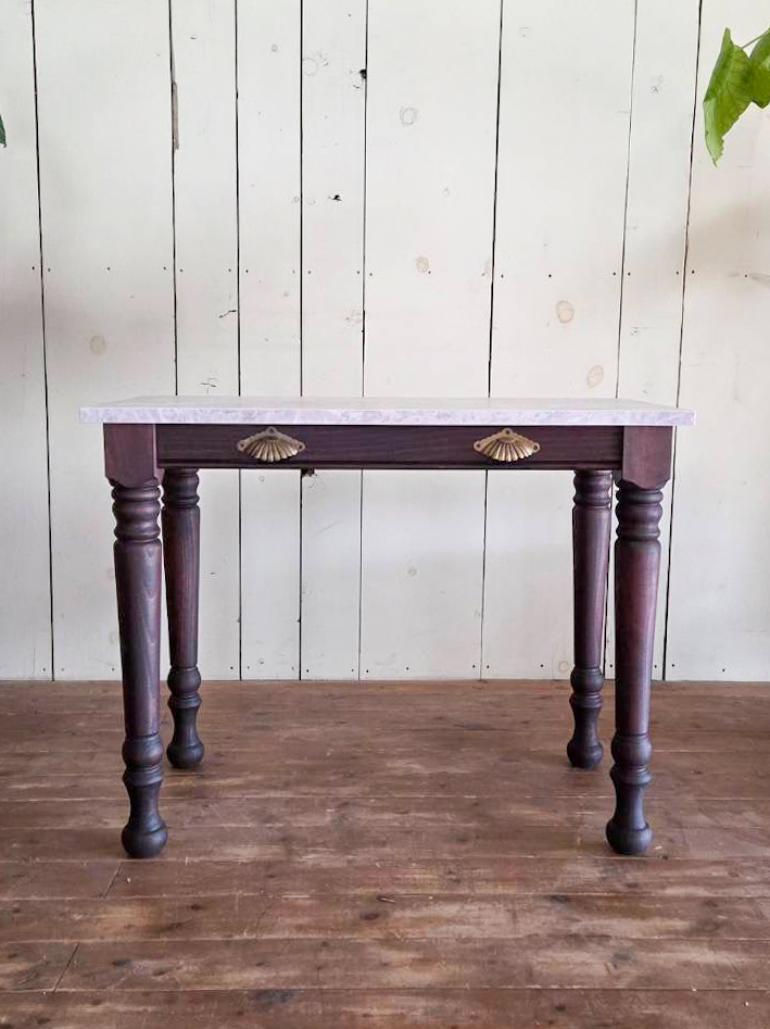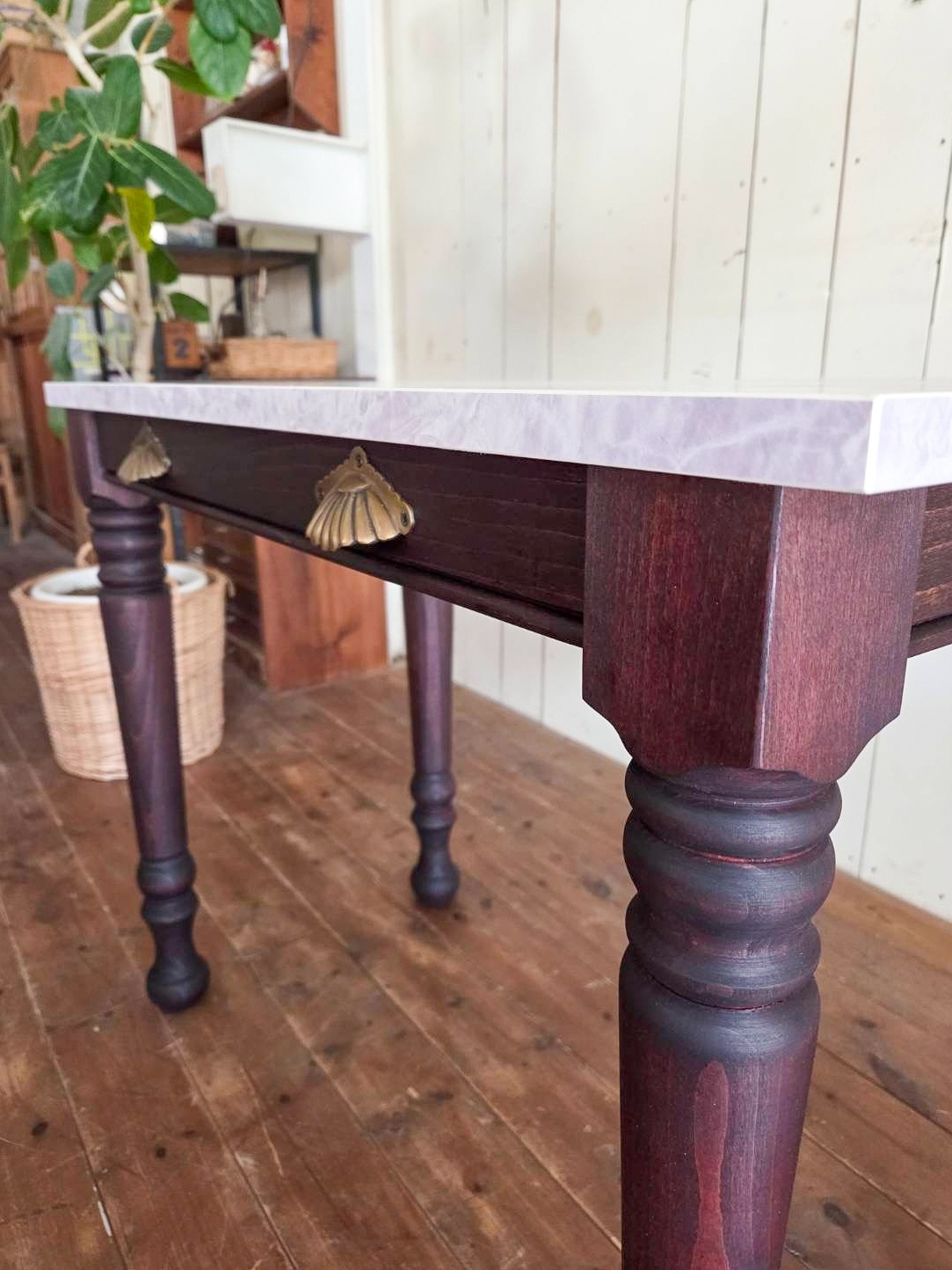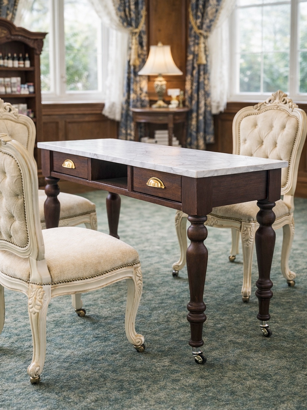 ろくろ脚(ターンドレッグ)と大理石天板のマッチングが豪華なネイルデスク専門店です。