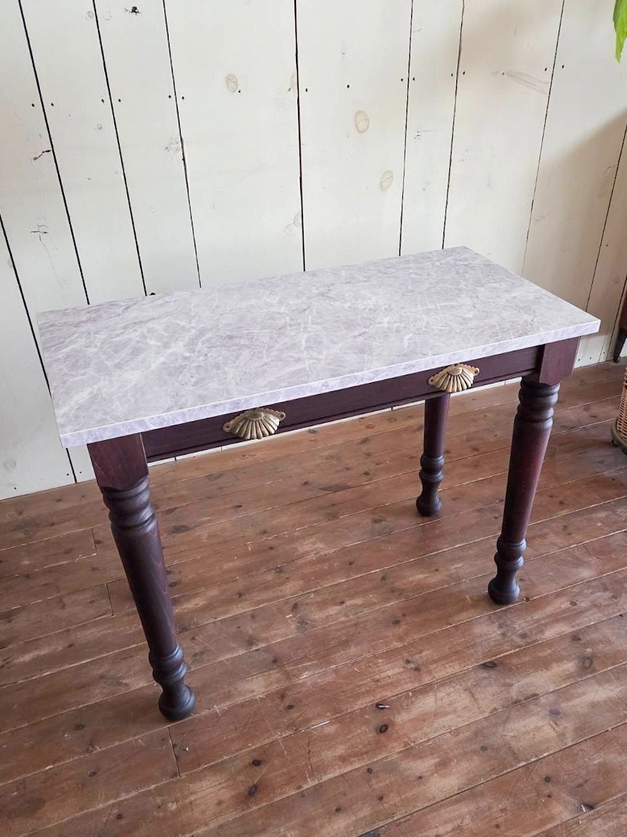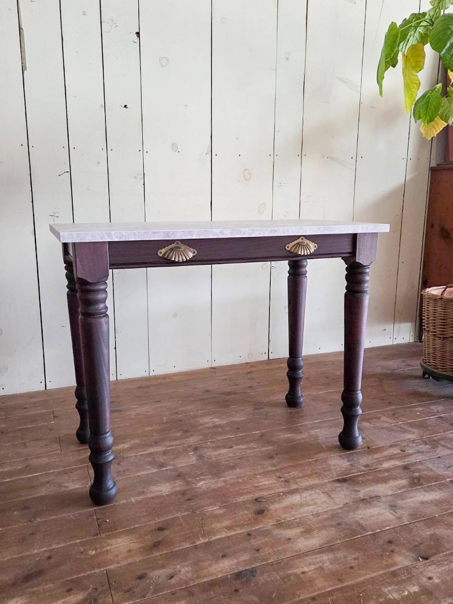 ろくろ脚ネイルテーブル・フェイク引出し700〜1200 (大理石メラミン天板・ボルドー色)