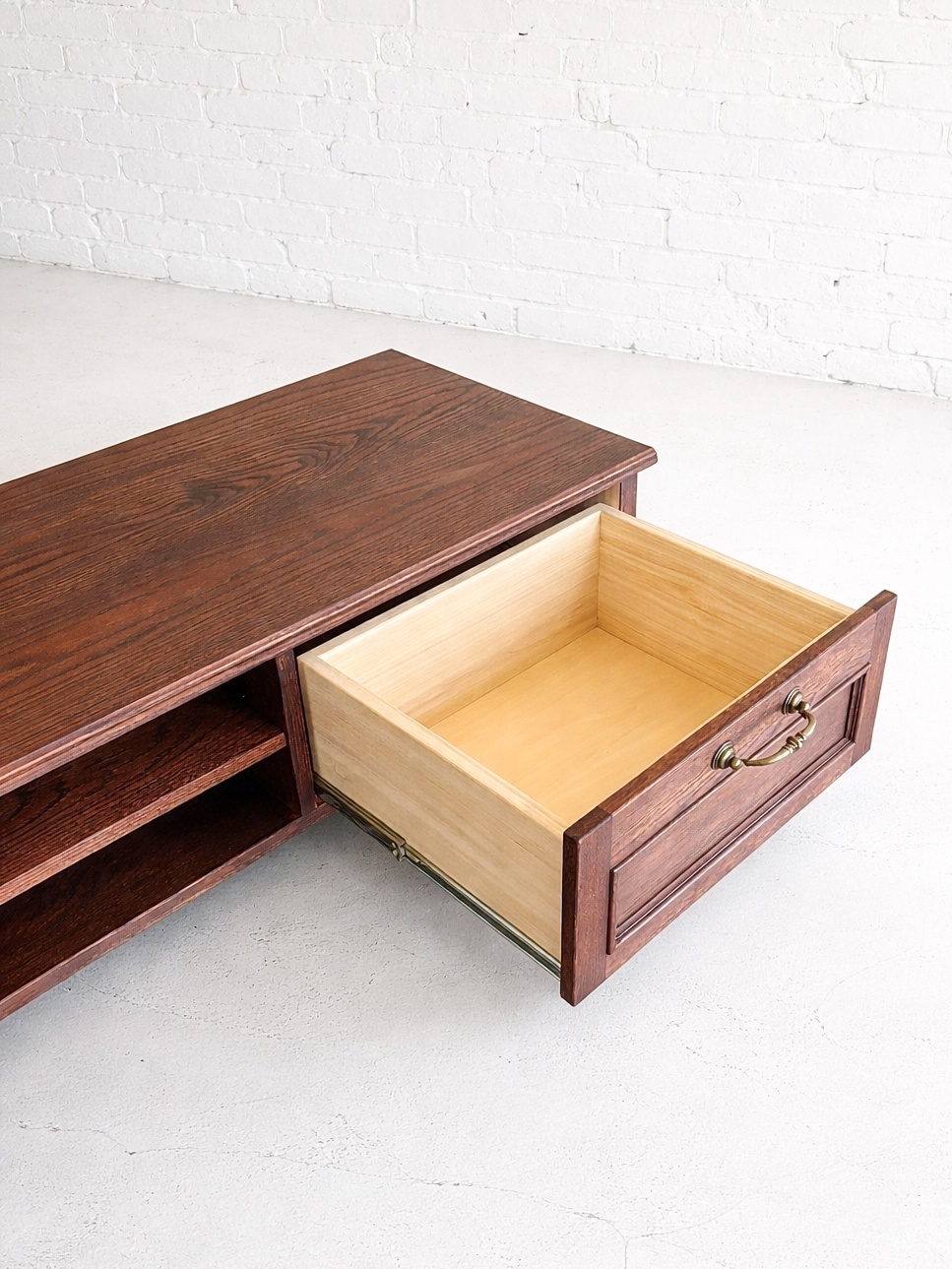 北海道のオーナー様に、オーク無垢材を使った高級感あるテレビボードを特注製作させていただきました。
