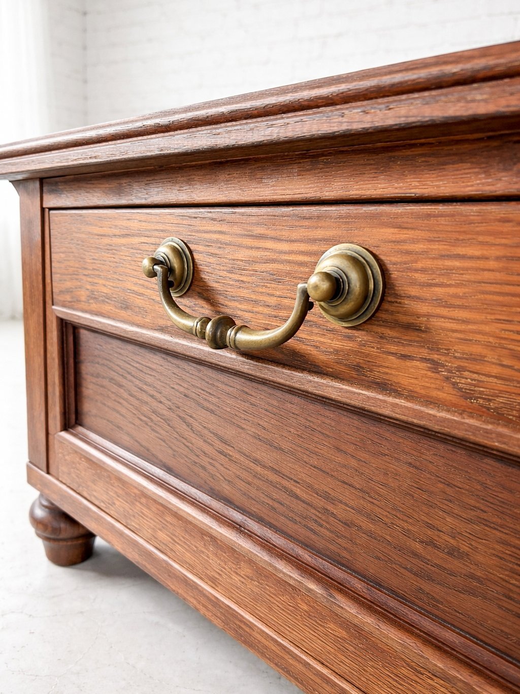 細部に施したモールディング加工もオーク材から削り出し、アンティーク感と高級感を漂わせます。