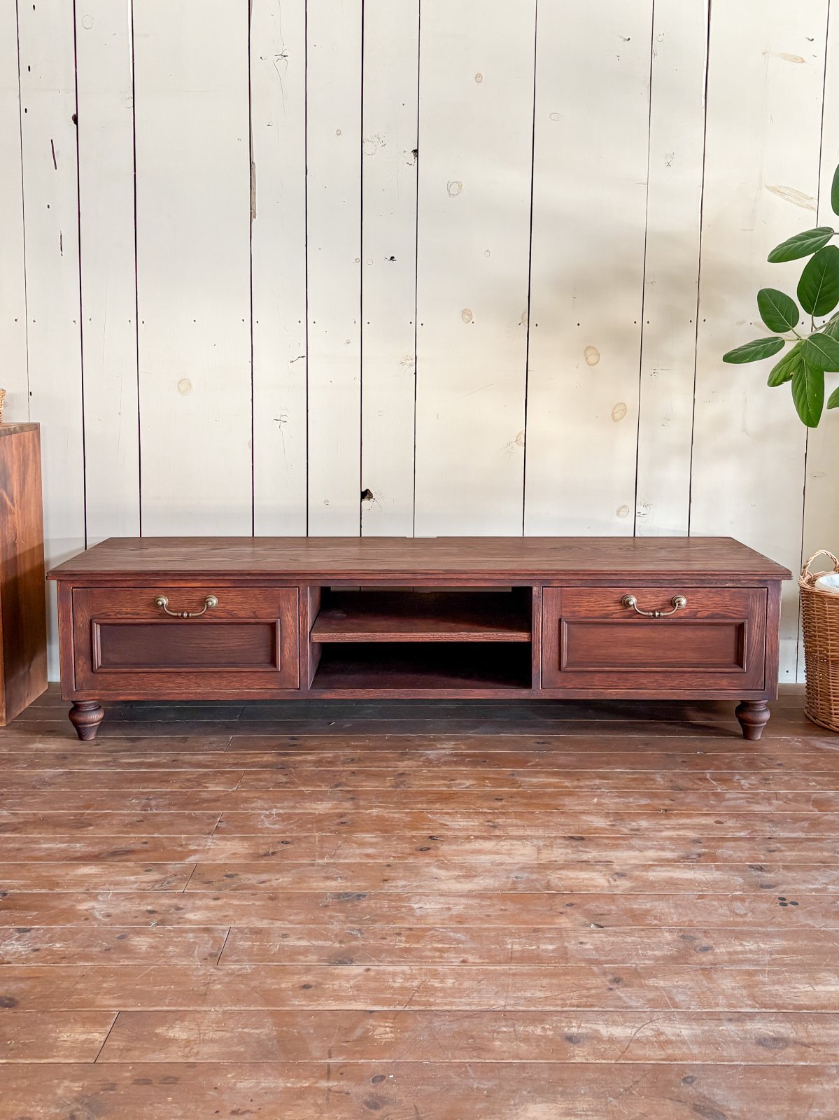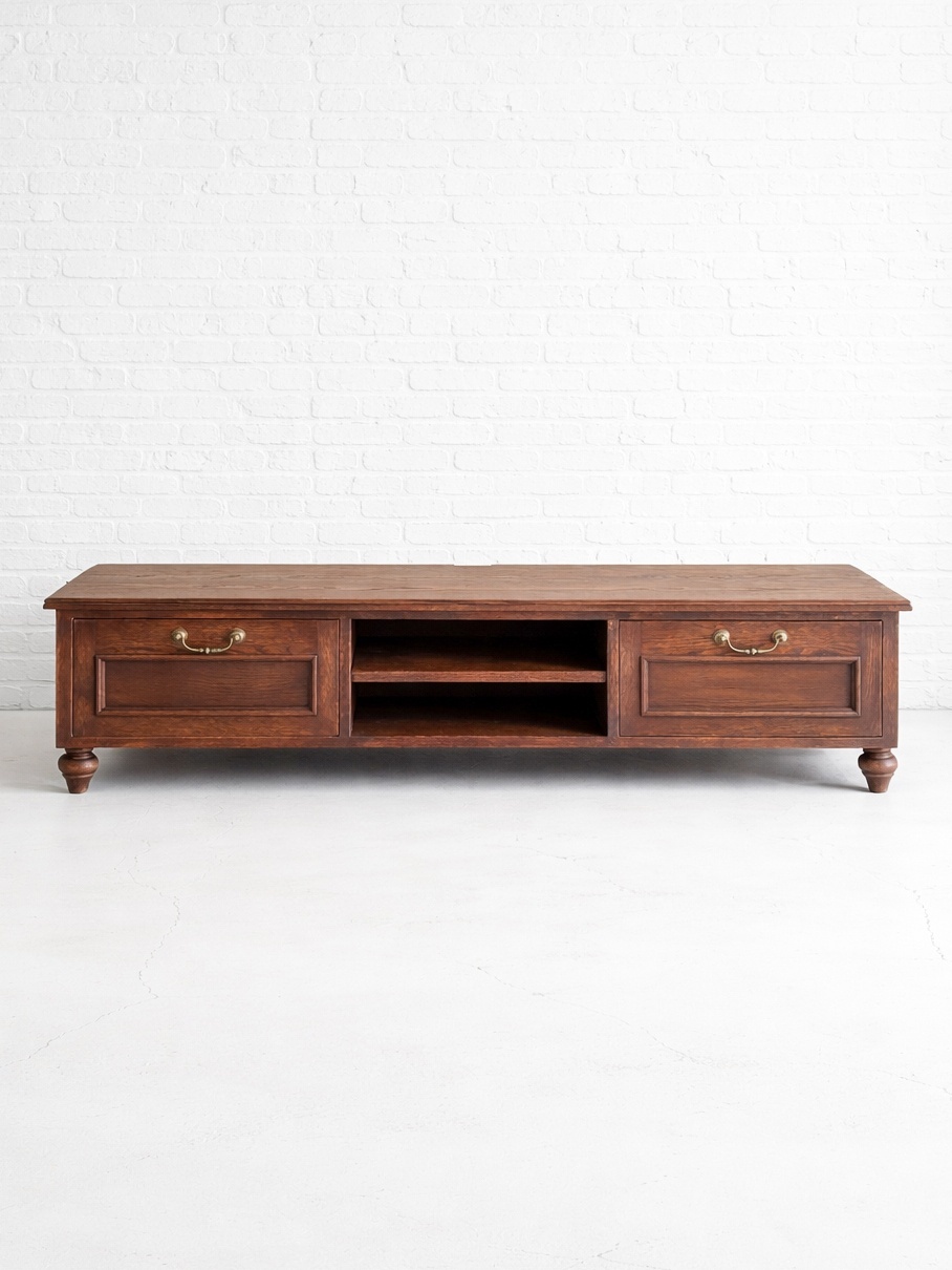 レッドオーク材を使った、クラシックアンティーク調デザインのテレビボード。