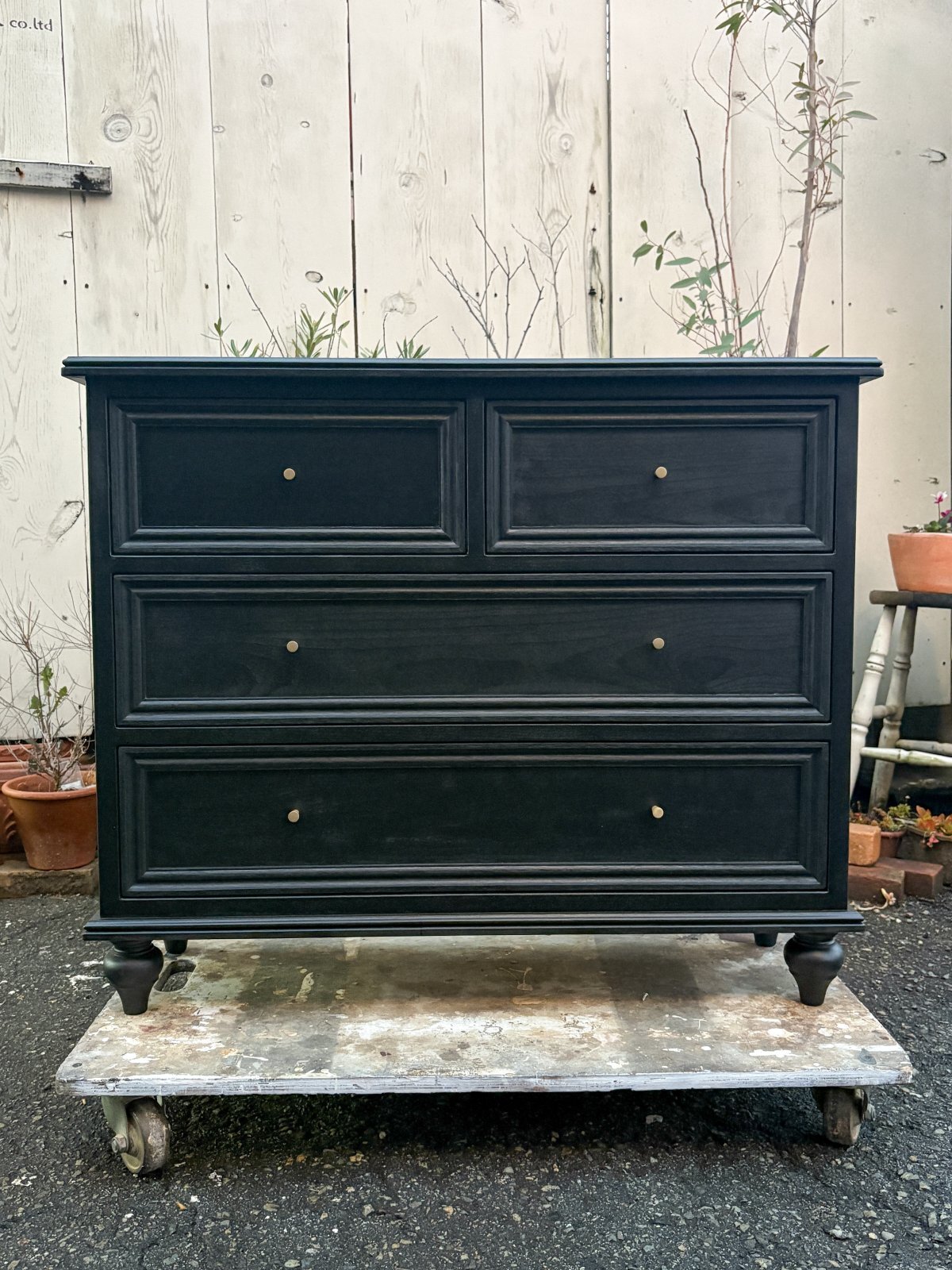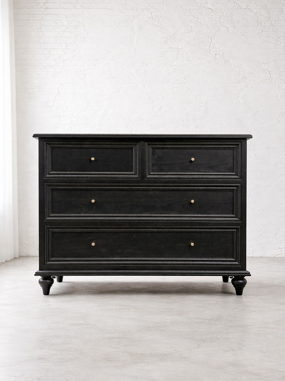 アンティーク調3段チェスト4dw (ブラック・ろくろ足)W1000
