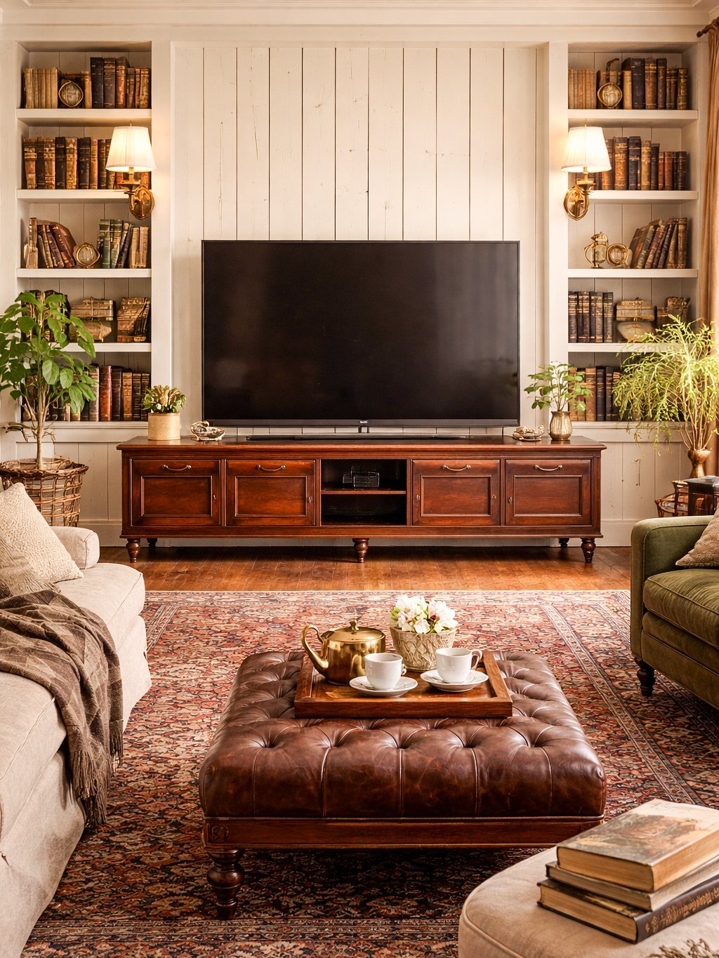 モールディングや真鍮取っ手で装飾した、おしゃれなテレビ台。