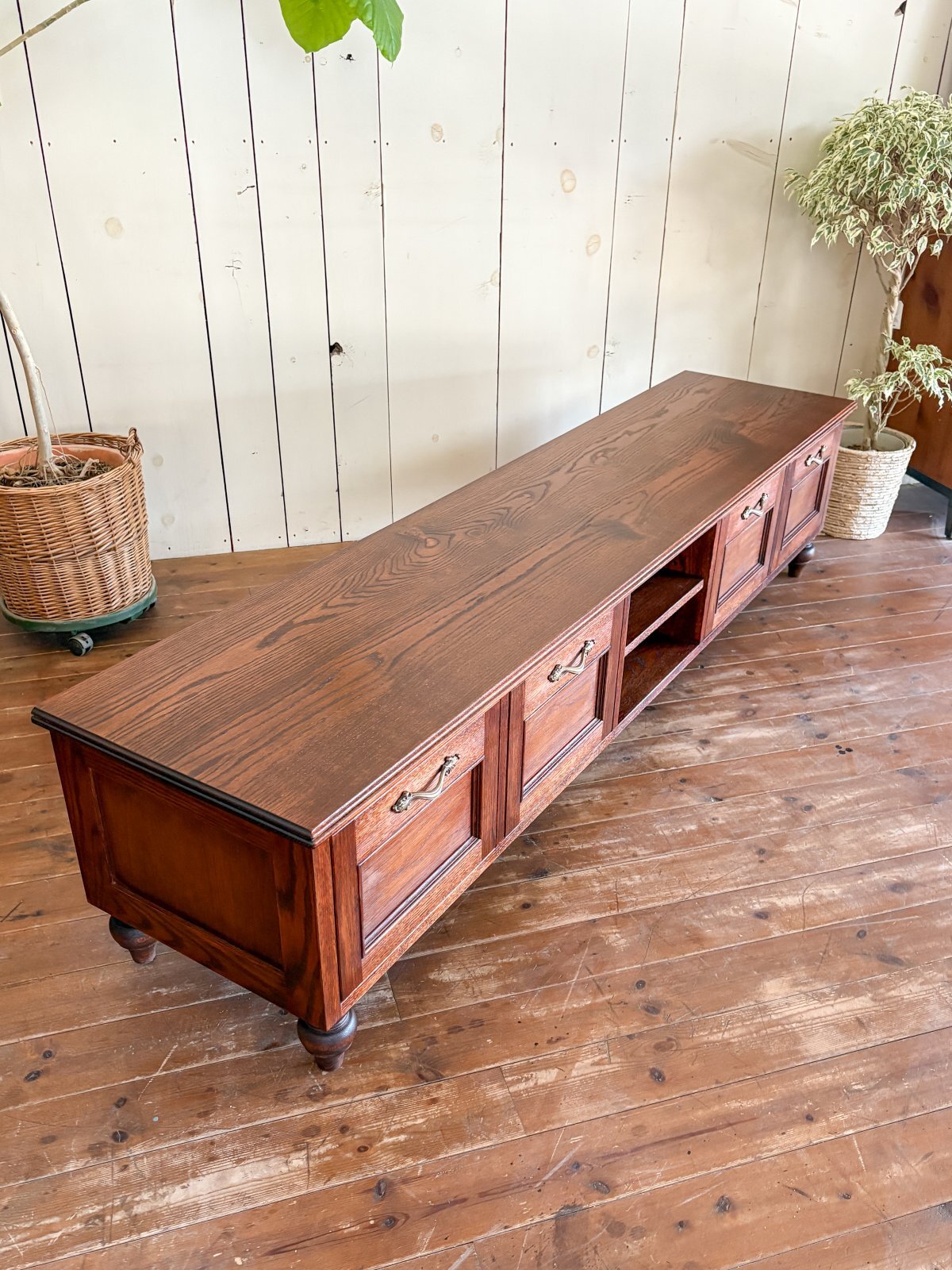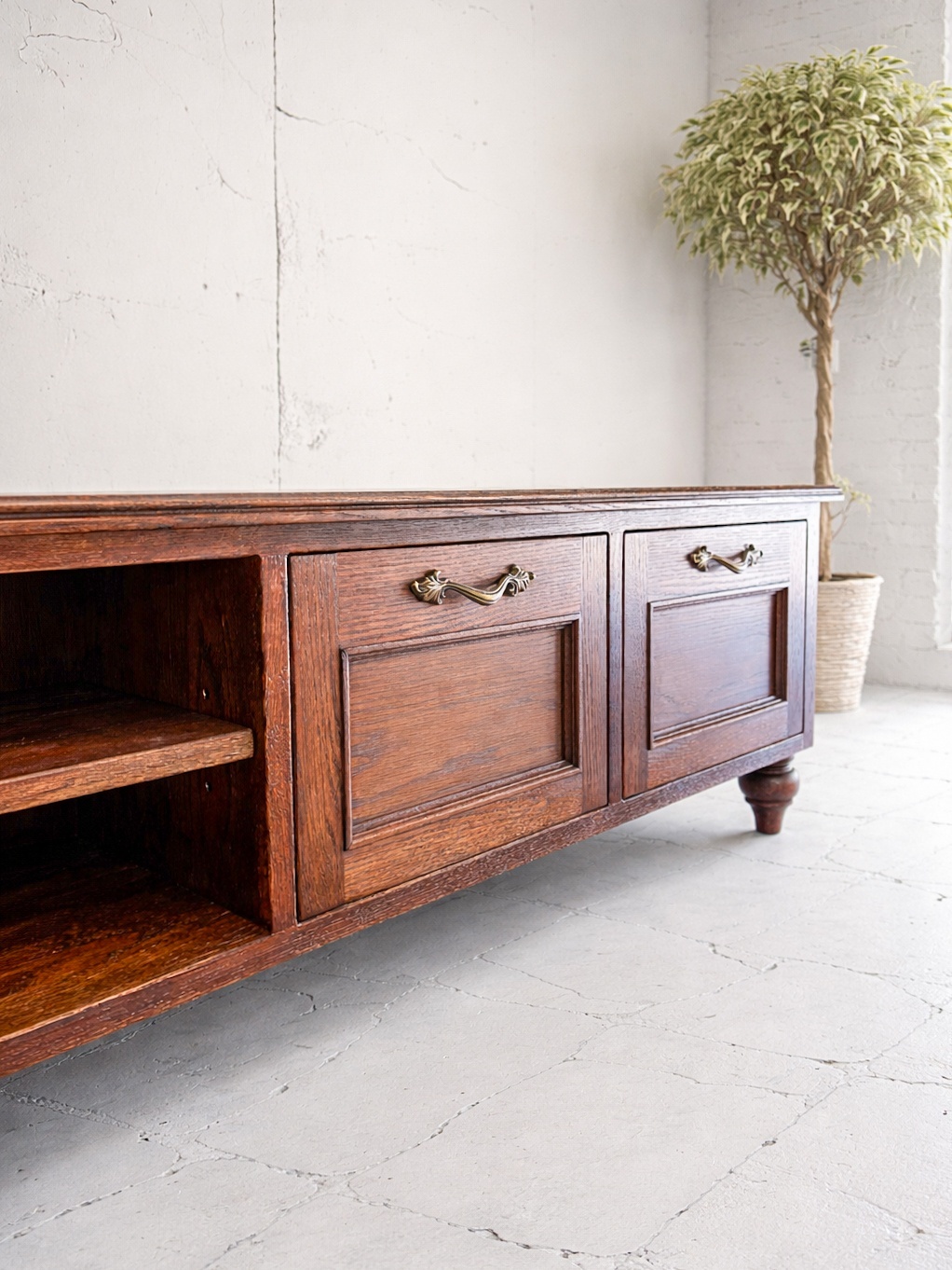 レッドオーク材を使った、クラシックアンティーク調デザインのテレビボード。