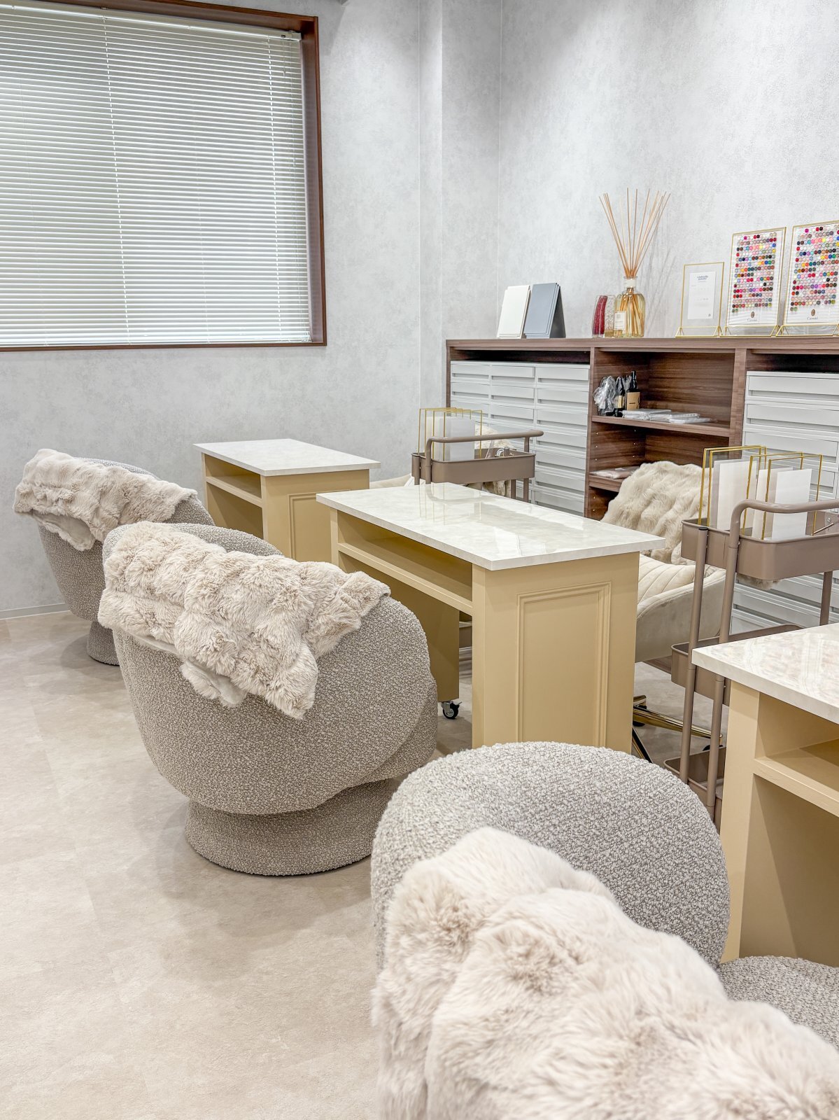 サイズやカラー、デザインカスタム対応いたします。ネイルサロン向けの店舗家具製作、お気軽にご相談ください。